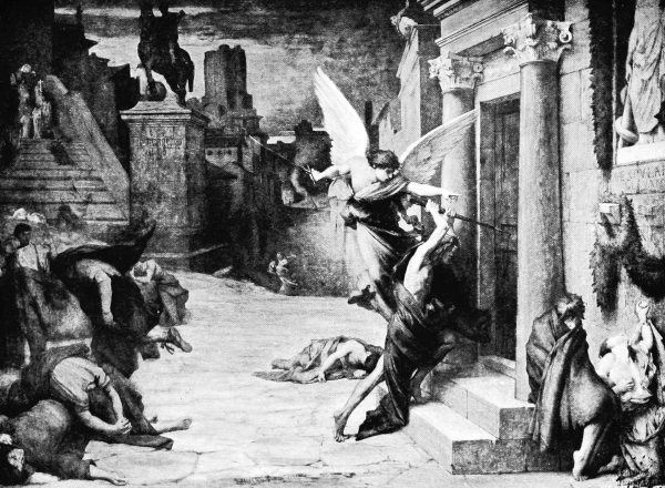 Homer’s picture of the Archer Apollo has inspired one at least of the masterpieces of Graeco-Roman sculpture. Apollo the Avenger sends the pestilence in punishment of sin. Homer sets it as a signal evidence of divine displeasure in the forefront of his epic, as does Sophocles after him in the greatest of his tragedies. Apollo is pictured as the god who spreads the plague by arrows shot from his bow. He swoops down with impetuous onset, like the sudden fall of night in Mediterranean lands, as the ‘pestilence that walketh in darkness’ and ‘the arrow that flieth by day’. The plague is first epizootic, falling on mules and dogs, then epidemic among the Greek host. A council is called, and Achilles advises that some prophet or priest be summoned to say what propitiatory sacrifices have been neglected: