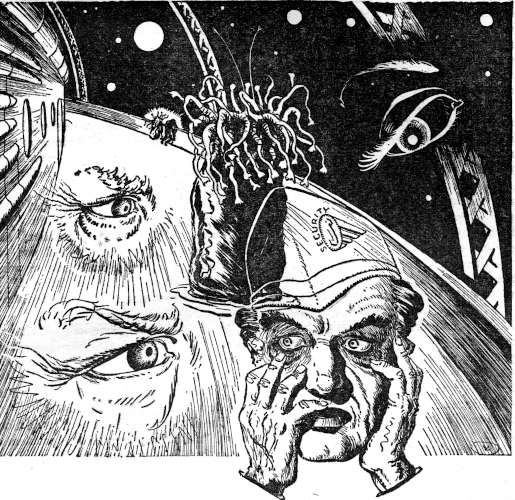 The nightmare boiled up in Horitz's head. Impossible things, memories from nowhere, battled with his sanity: the silent decks, the slow, dreamlike progress upward into starlight ... and the hideous purple face, staring impersonally into his.