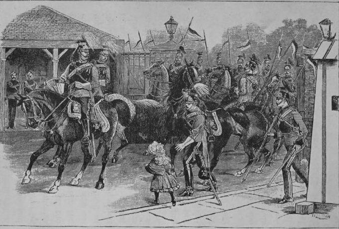He knew what embroidery cost by his own mess waistcoats and his tunics. Then not only was the dress of the child of a very costly description, but p. 10its sleeves were tied up with Cambridge blue ribbons that were evidently new, and its waist was encircled by a broad sash of the same material and tint. Altogether it was just such a child as he was occasionally called upon to admire in the houses of his married brother officers; yet that any lady in the regiment would lend her baby for a whole night to a set of harum-scarum young fellows for the purpose of playing a trick on a brother officer was manifestly absurd. And besides that, Bootles was so good-natured and such a favorite with the ladies of the regiment that he thought he knew all their babies by sight, and he became afraid that this one was indeed a little stranger in the land, welcome or unwelcome.