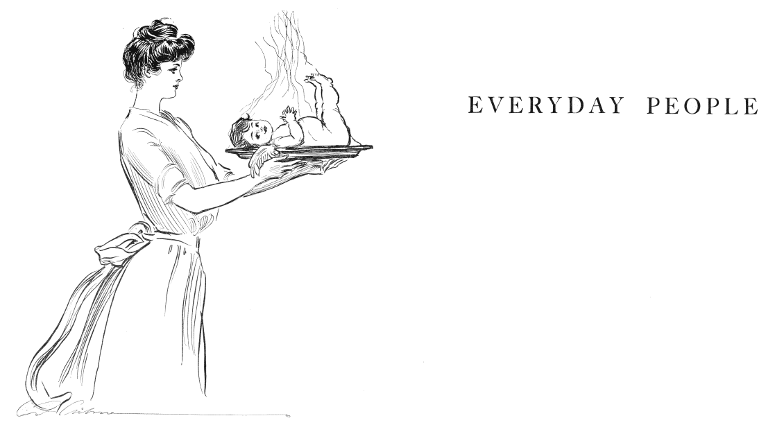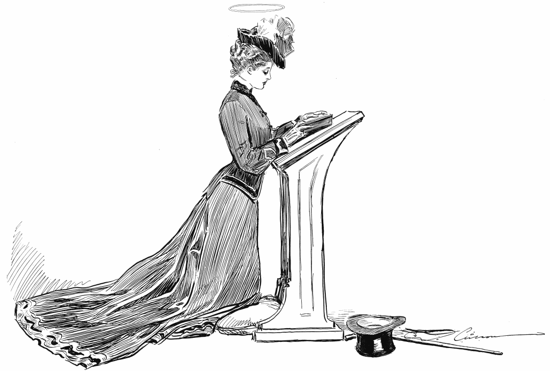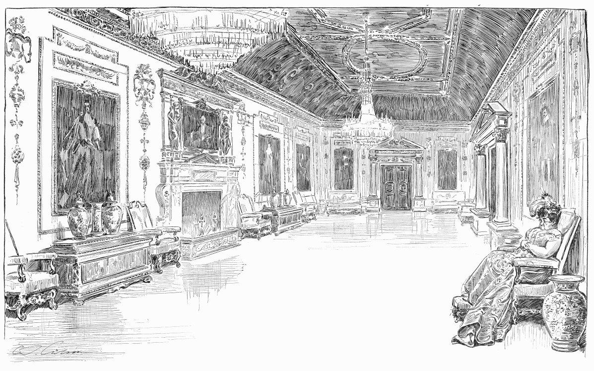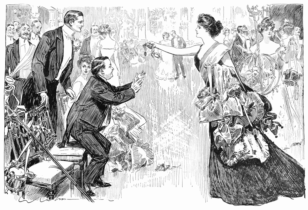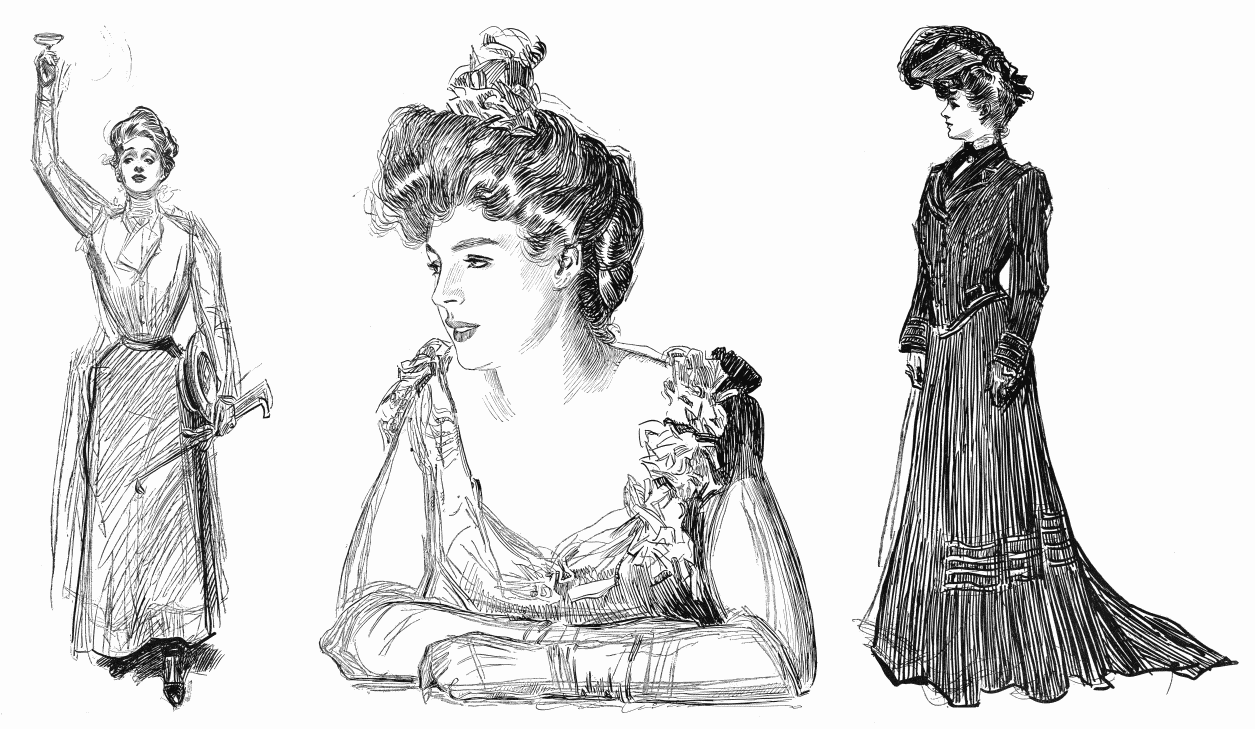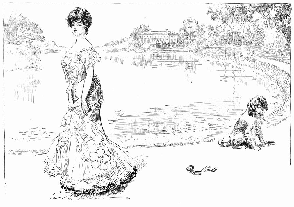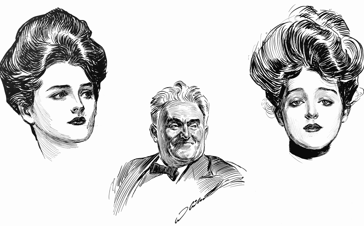 Mrs. Innittor Dedd’s maid reads: “Among those present was Mrs. Innittor Dedd, whose lovely face and splendid figure were enhanced by a tiara of diamonds and three ropes of pearls. She wore her famous rubies and was even more regal than at the Bullyon’s ball the night before,” etc., etc.