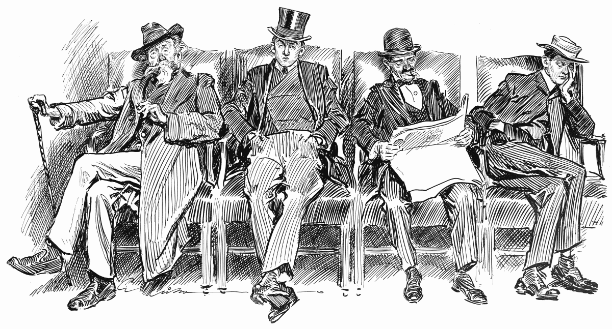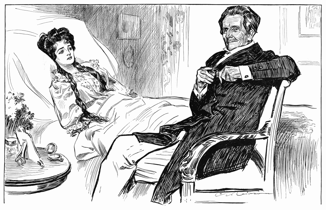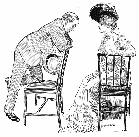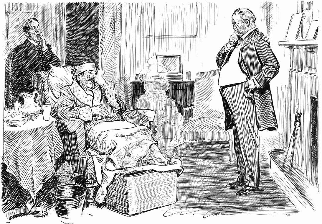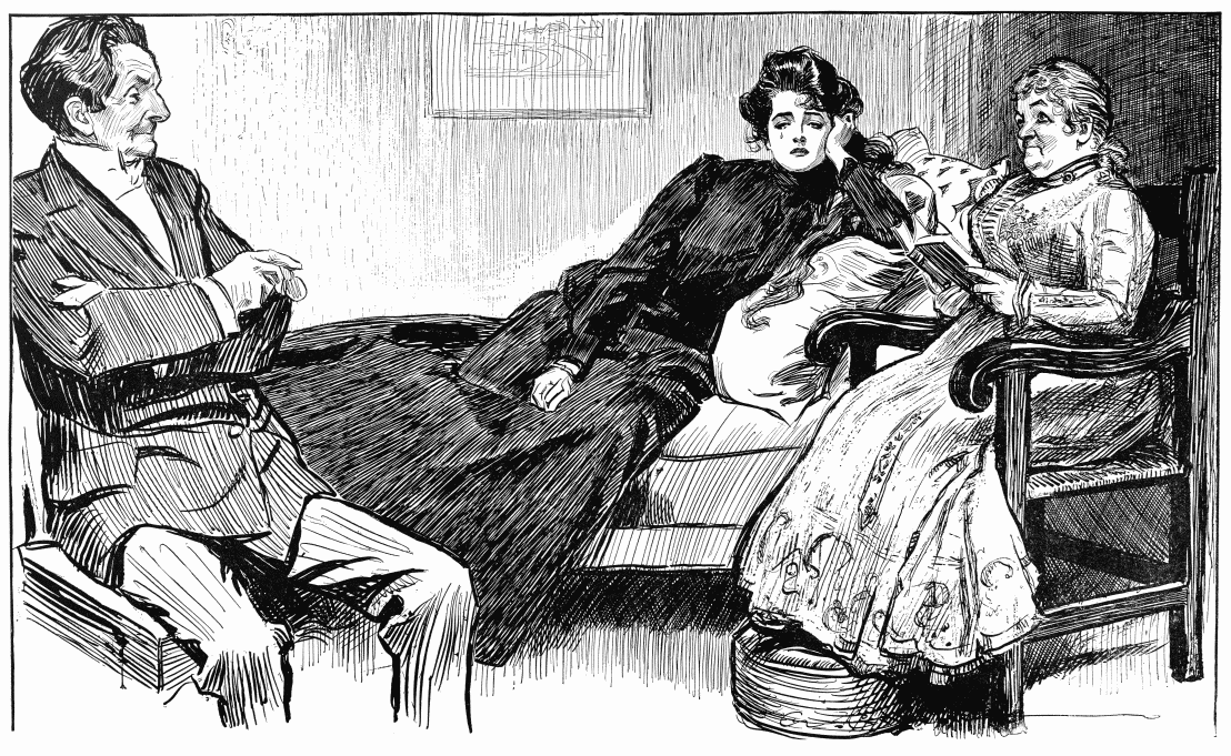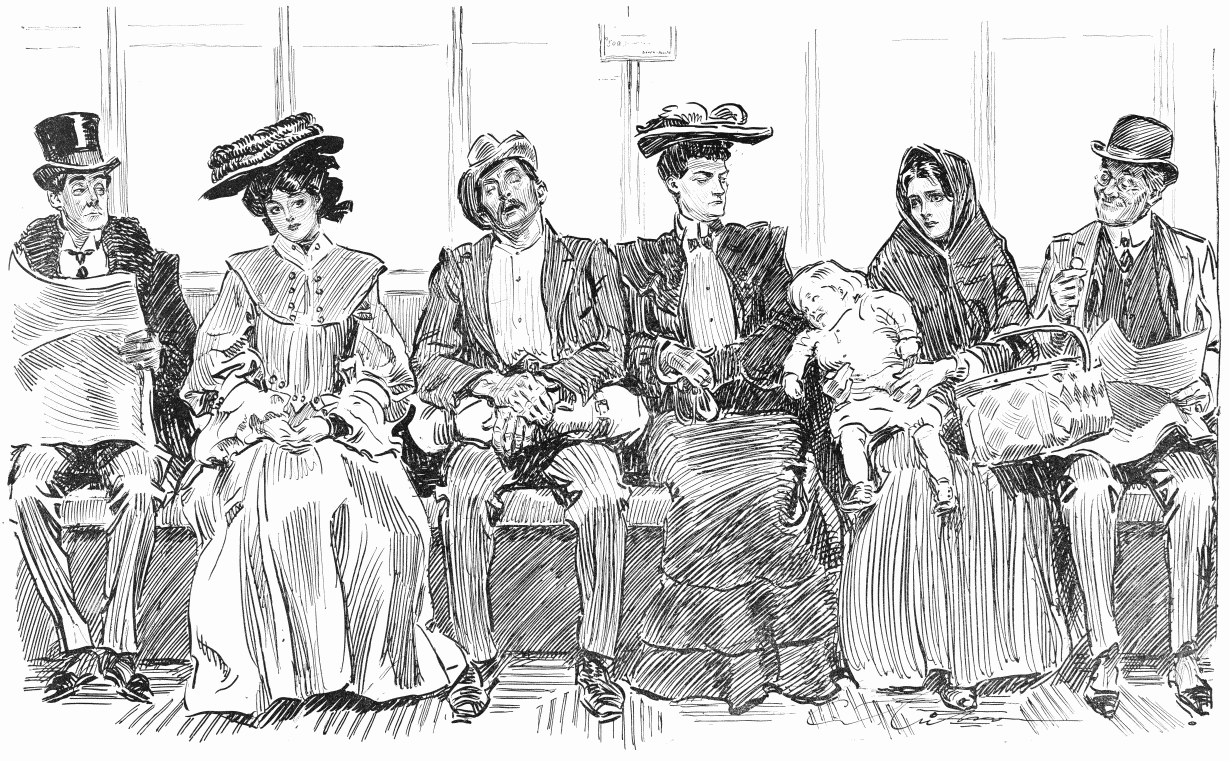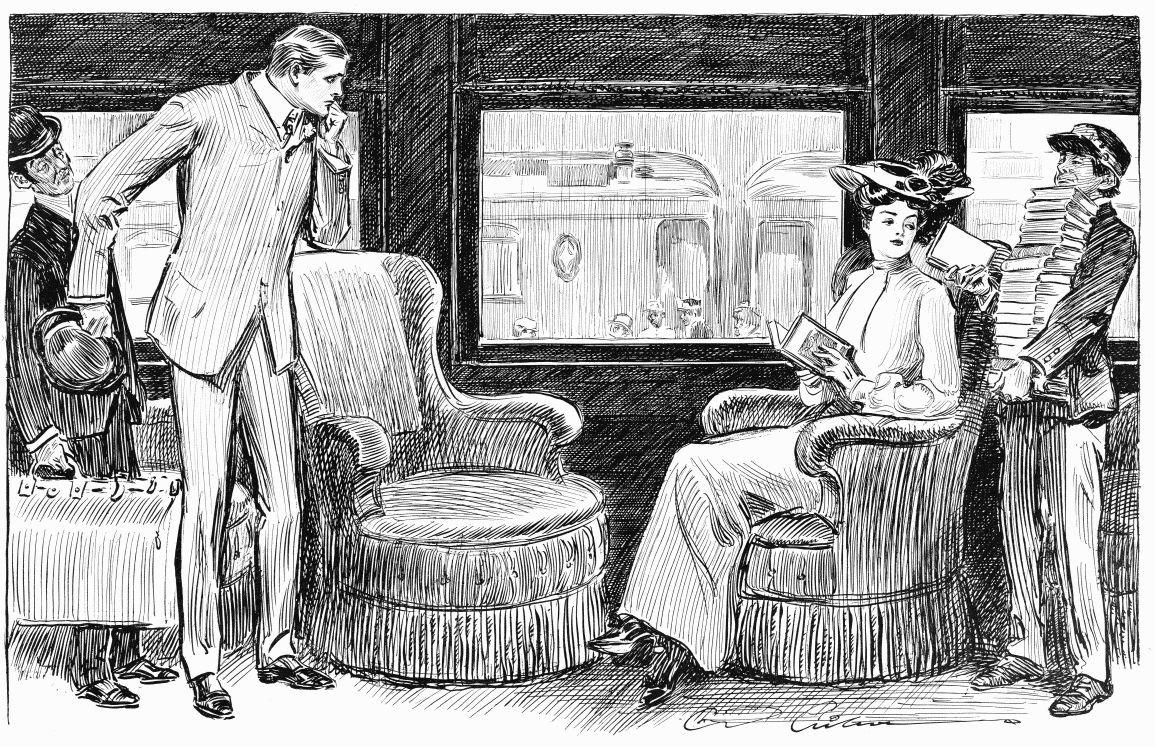 In pursuance of the advice of his physicians, our hero starts on his journey in search of rest, but at the very outset finds himself confronted by another distressing circumstance: his seat in the parlor car is next to Miss Peachem, for whom he has always had the most profound regard.