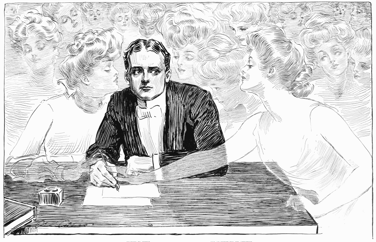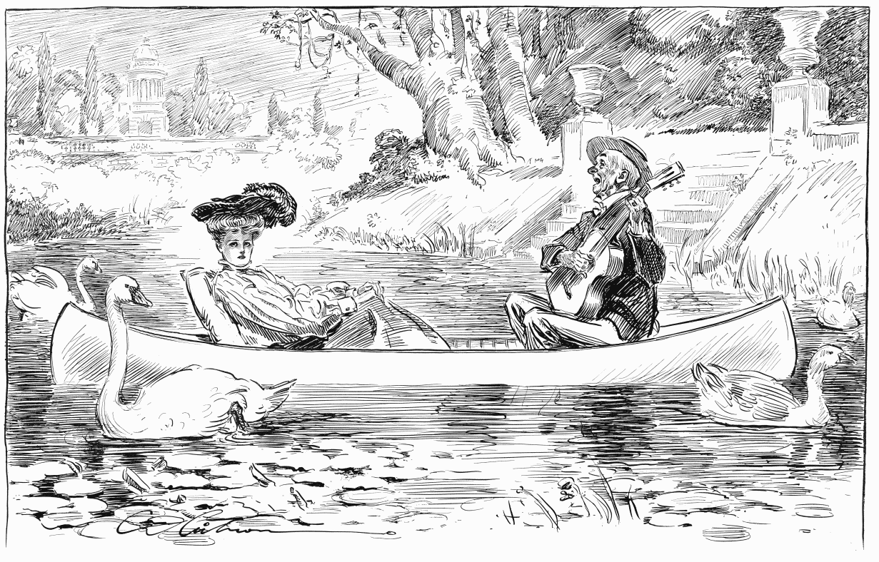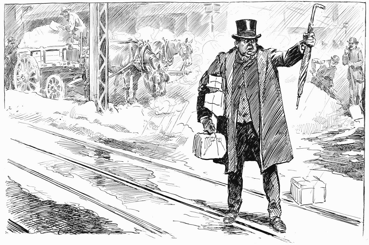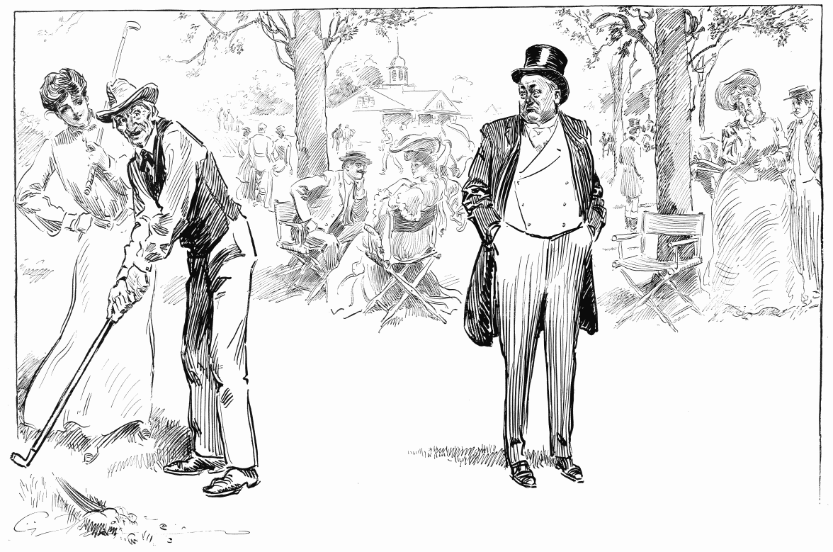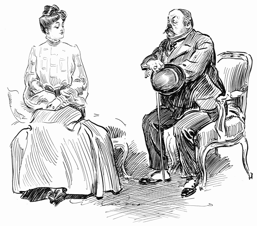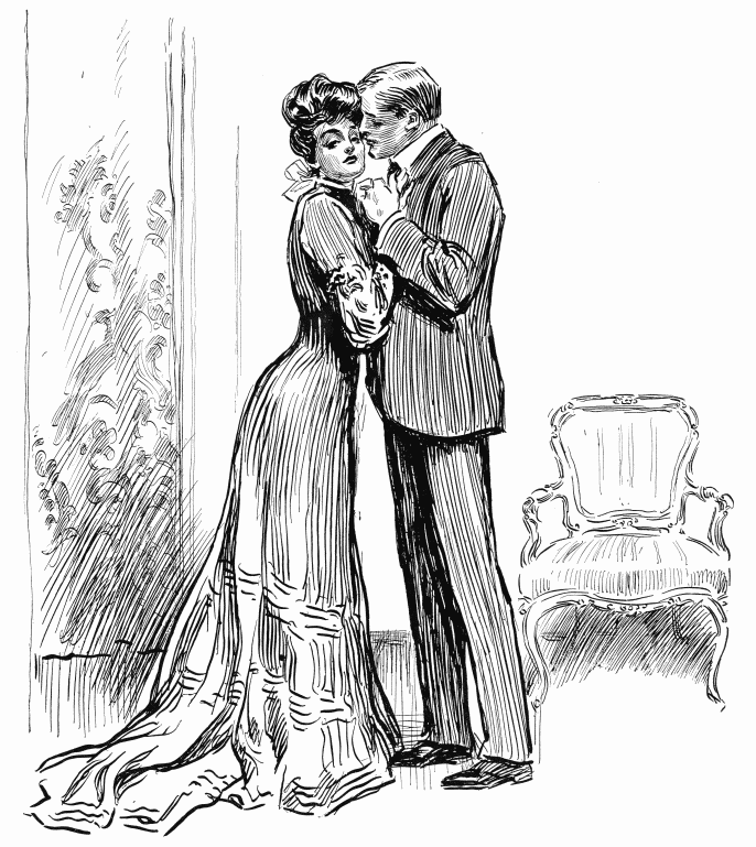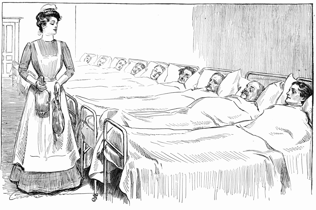 In pursuance of the advice of his physicians, our hero starts on his journey in search of rest, but at the very outset finds himself confronted by another distressing circumstance: his seat in the parlor car is next to Miss Peachem, for whom he has always had the most profound regard.