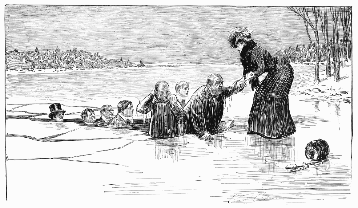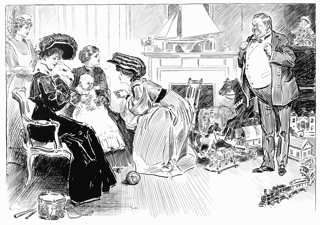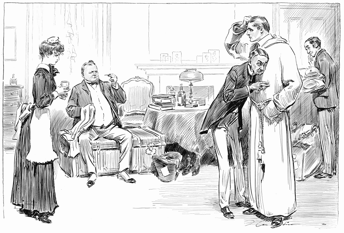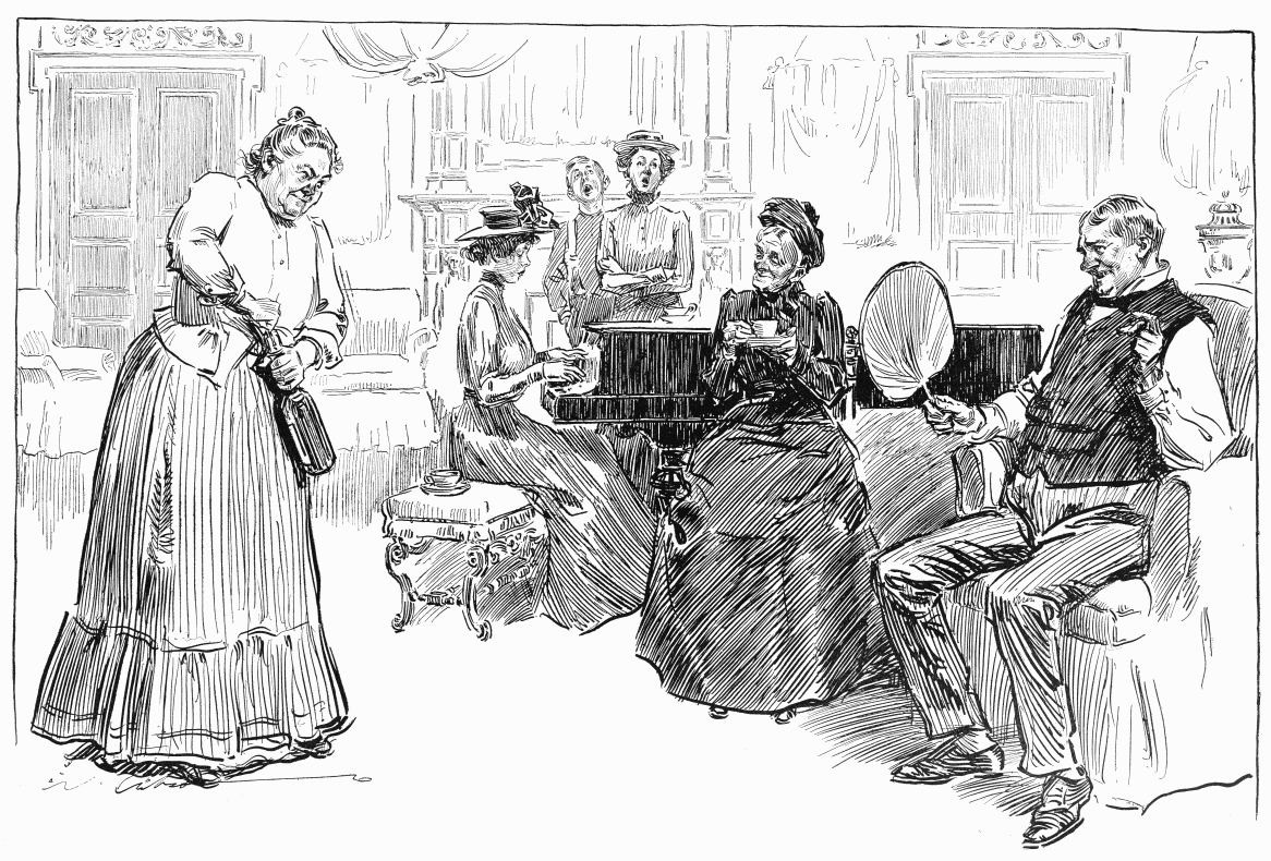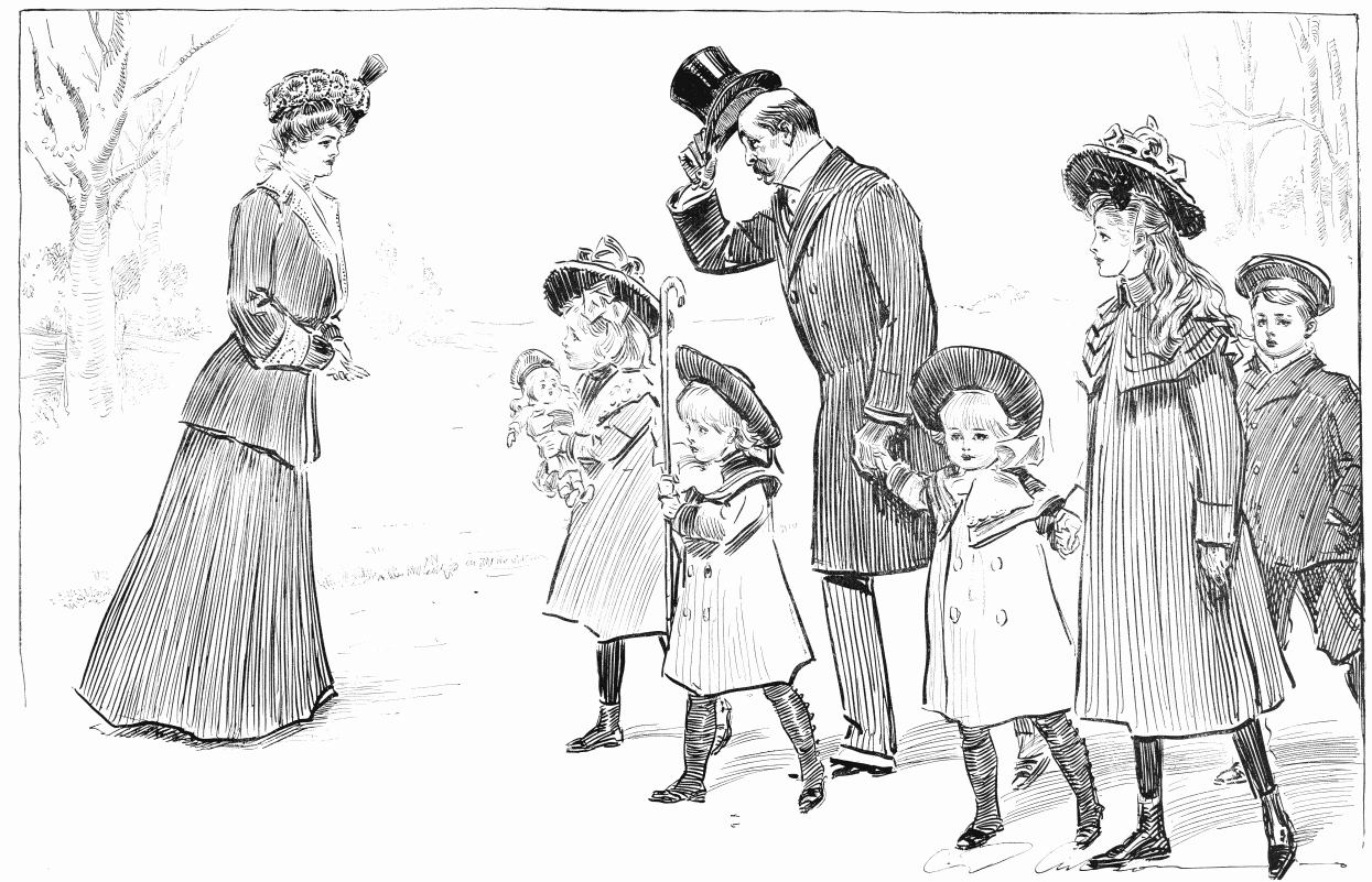 “I should say so! My wife takes advantage of their absence to dress about twenty years younger than she really is.{296}”
