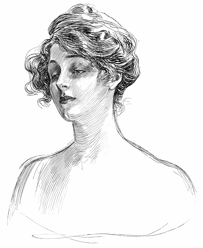 The first drawing of this series gives a necessarily imperfect portrait of the hero, since he is discovered in the act of carrying on two conversations at a time.