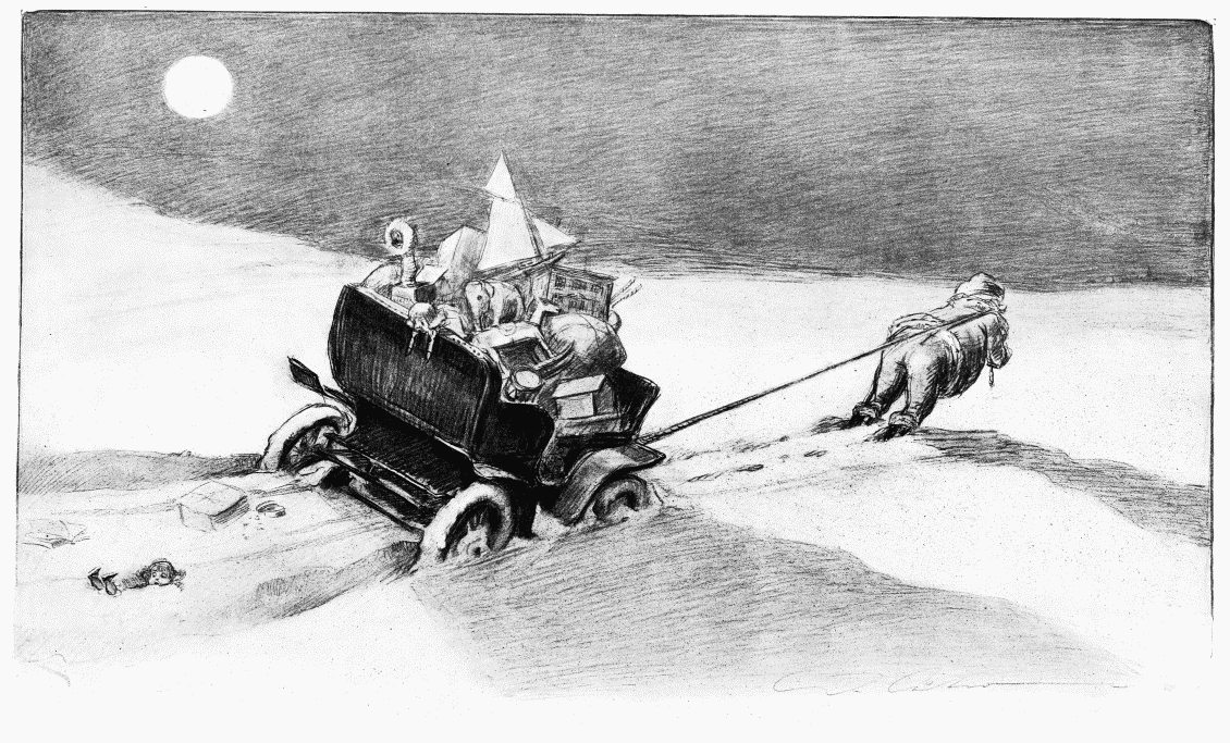 After a vain search for rest and quiet, he falls into a most sensitive condition and suffers from the cold.