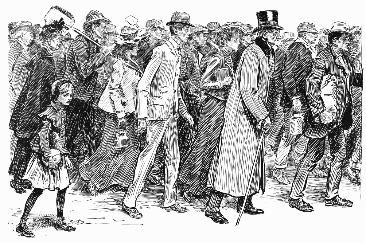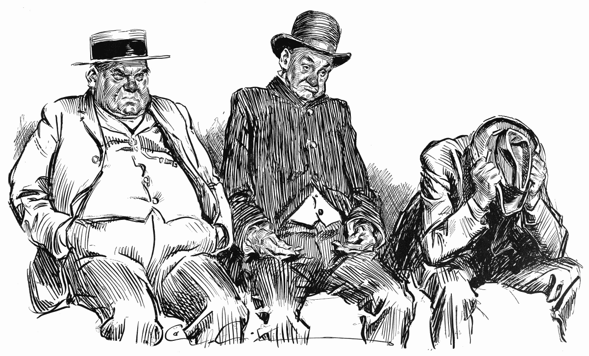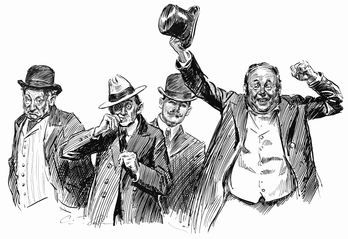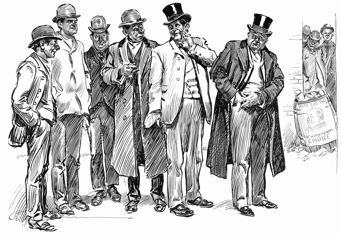 “Who is it’s brought us here, I ask you? Who’s a-grindin’ us under the iron heel o’ despotism? I say to you the time has come, when—— ”