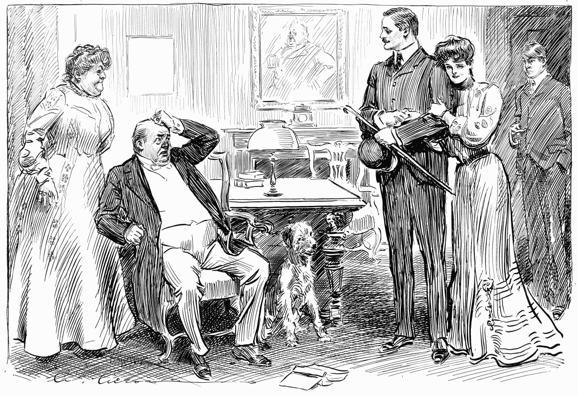 “I said, my daughter had been indulgently brought up, and was used to luxury, and I could not consent to her becoming the wife of a literary man. And he said, Damme, his last book had sold a million copies and brought him in over three hundred thousand dollars! What’s a man to do a case like that? He’s got more books making, he says. I shall have to let the foolish girl throw herself away on him, if she wants to.{297}”