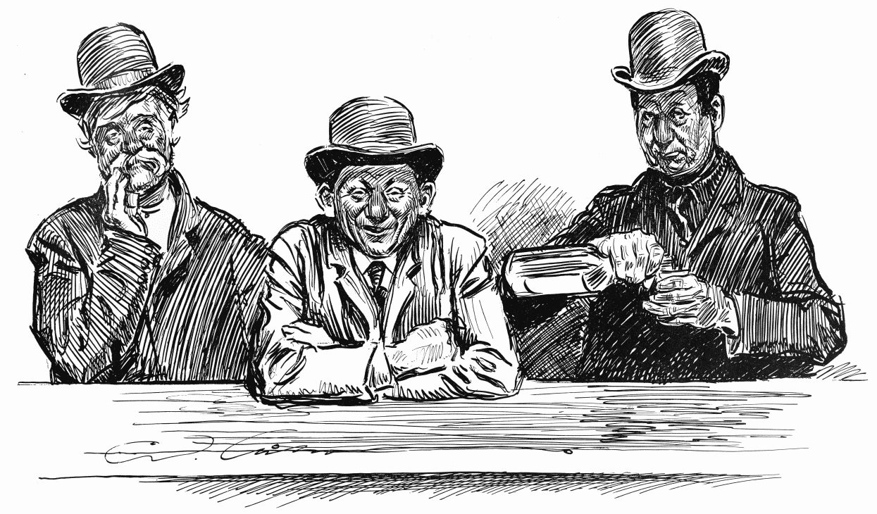 IN ONE OF OUR MOST RESPECTABLE CLUBS, THE MORNING AFTER THE BIG FIGHT.