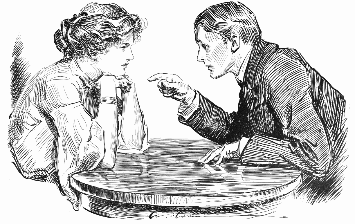 He: “Yes, I remembered you at once as the girl I was engaged to in the mountains some seasons ago.”