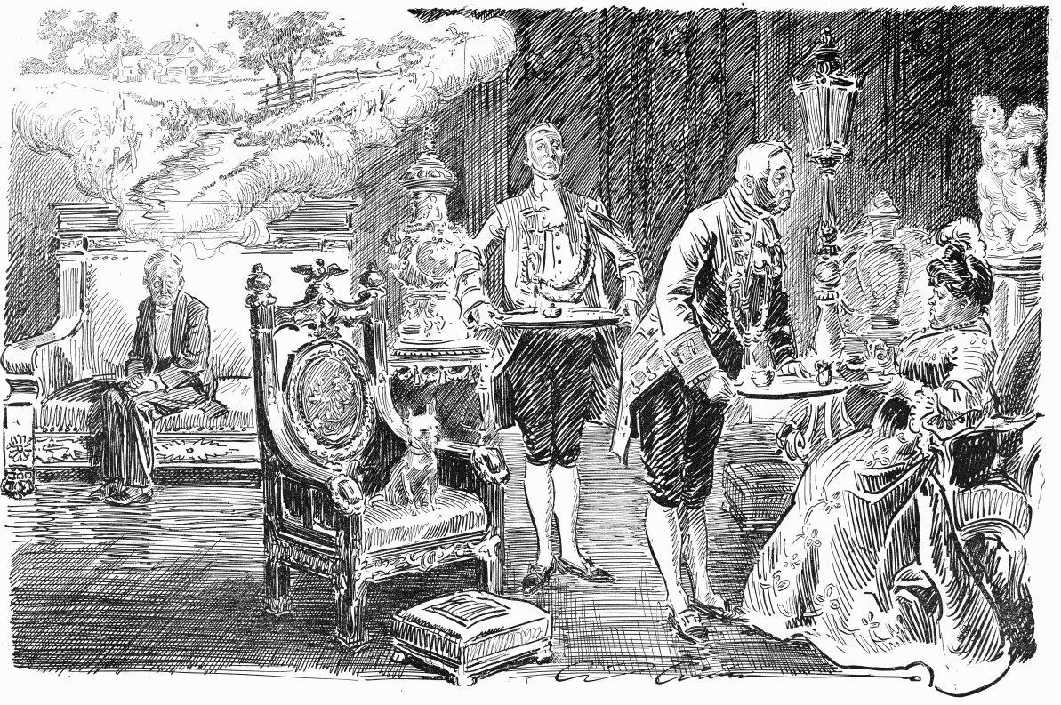 Mr. Tagg is fascinated by Washington society and decides to go into politics. He enjoys a vision of himself at the Court of St. James.