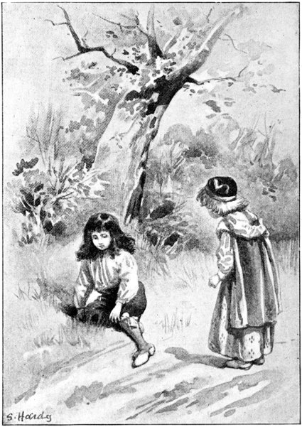 Meanwhile, the miller’s boy turned out a capital boy for such a small one. He was most diligent, rising with the lark,{43} and so obliging and obedient, and, though sad sometimes, he was generally merry, singing at his work, and when the millwork was done, he would fetch in water from the well for Mistress Speedwell, and logs from the out-house for the great kitchen hearth-place, for the evenings were beginning to grow chilly, and he played cat’s cradle and spillikins with Molly, and cut out little men and women and cows and dogs from paper, to her boundless delight, and the miller, for all he was so silent, and even grim in his manner to him, was forced to yield him a good word when Mistress Speedwell would ask her husband if he did not consider that the shelter they had given the poor forlorn gipsy lad had returned as a blessing on themselves, for Mistress Speedwell did not know the truth, whatever her husband might know, or whatever he might suspect.