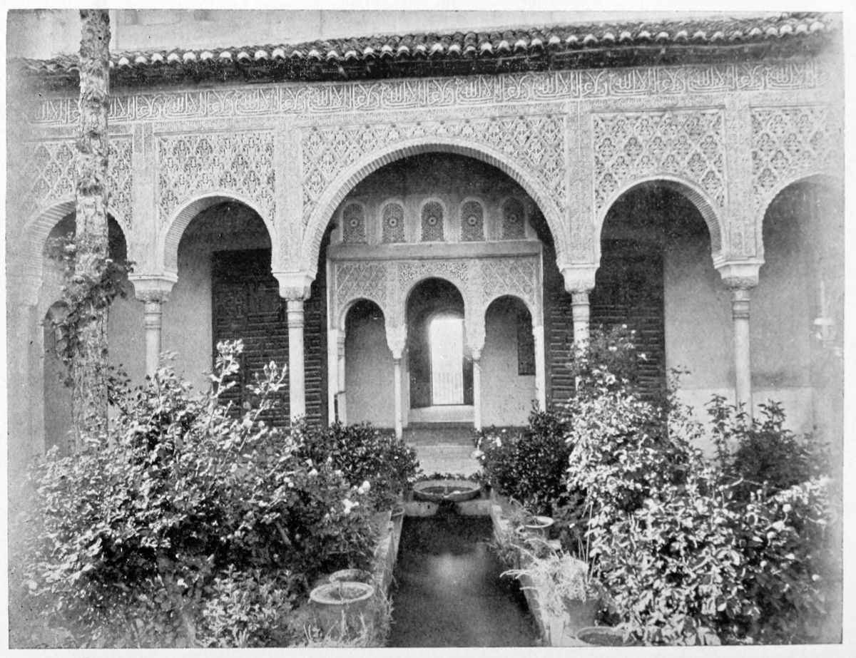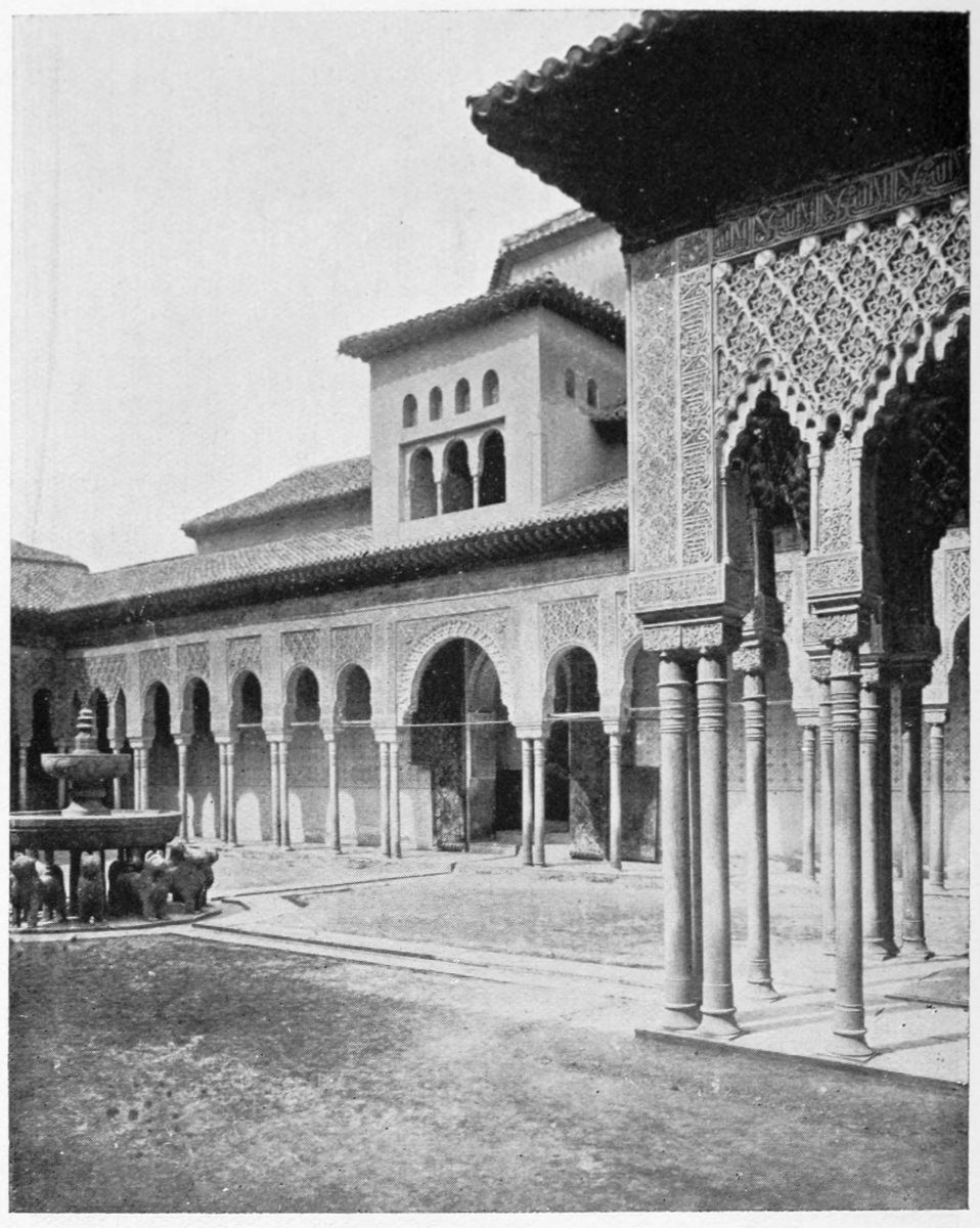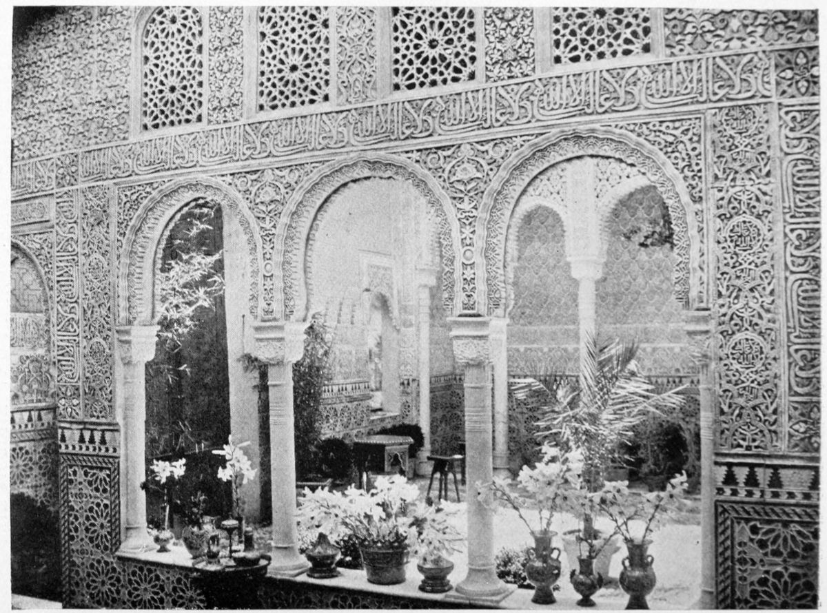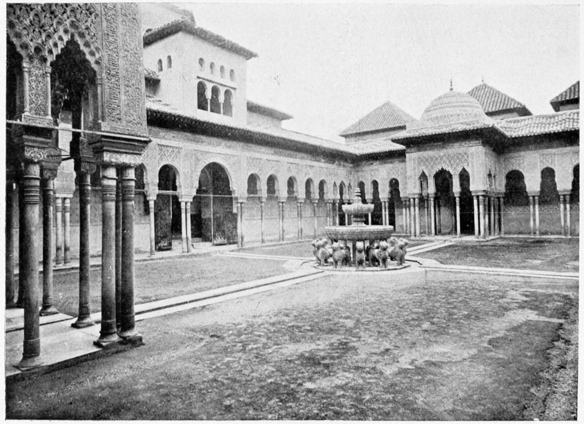 Don Mariano Contreras, Conservator of the Alhambra, the son of the gifted Raphaël Contreras, who devoted thirty-seven years of his life to the restoration of the Palace—gave me the benefit of his knowledge of this unique treasure-house of art; and I have also laid under contribution the beautiful plates of Owen Jones, who disposed of a Welsh inheritance in order to produce his great work on the Plans, Elevations, Sections, and Details of the Alhambra. Jones’s Grammar of Ornament, which has been described as “beautiful enough to be the horn-book of the Angels,” also contains the result of his researches in the Alhambra, which occupied him for the greater part of eleven years. A selection of these illustrations is here rescued from the obscurity of public libraries and the inaccessible fastnesses of private collections. The inclusion of John F. Lewis’s drawings, and the reproduction of a series of pictures by James C. Murphy, who spent seven years in the study of the artistic marvels of the Alhambra, I do not feel called upon to defend.{x} The photographs, several of which were placed at my disposal by Don Rafaël Garzón, represent the buildings as they appear to-day; the drawings were made before the Palace was damaged by the disastrous fire of September, 1890.