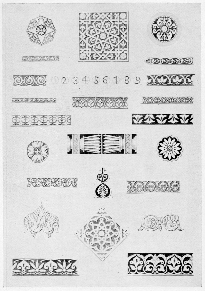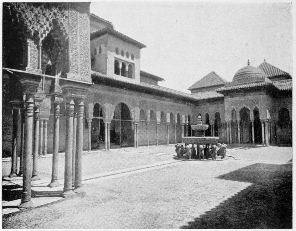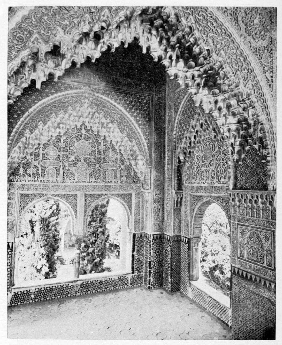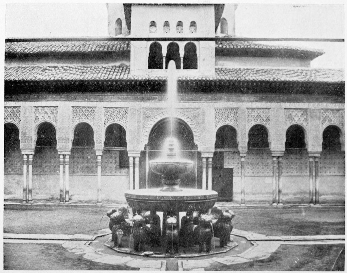 Don Mariano Contreras, Conservator of the Alhambra, the son of the gifted Raphaël Contreras, who devoted thirty-seven years of his life to the restoration of the Palace—gave me the benefit of his knowledge of this unique treasure-house of art; and I have also laid under contribution the beautiful plates of Owen Jones, who disposed of a Welsh inheritance in order to produce his great work on the Plans, Elevations, Sections, and Details of the Alhambra. Jones’s Grammar of Ornament, which has been described as “beautiful enough to be the horn-book of the Angels,” also contains the result of his researches in the Alhambra, which occupied him for the greater part of eleven years. A selection of these illustrations is here rescued from the obscurity of public libraries and the inaccessible fastnesses of private collections. The inclusion of John F. Lewis’s drawings, and the reproduction of a series of pictures by James C. Murphy, who spent seven years in the study of the artistic marvels of the Alhambra, I do not feel called upon to defend.{x} The photographs, several of which were placed at my disposal by Don Rafaël Garzón, represent the buildings as they appear to-day; the drawings were made before the Palace was damaged by the disastrous fire of September, 1890.