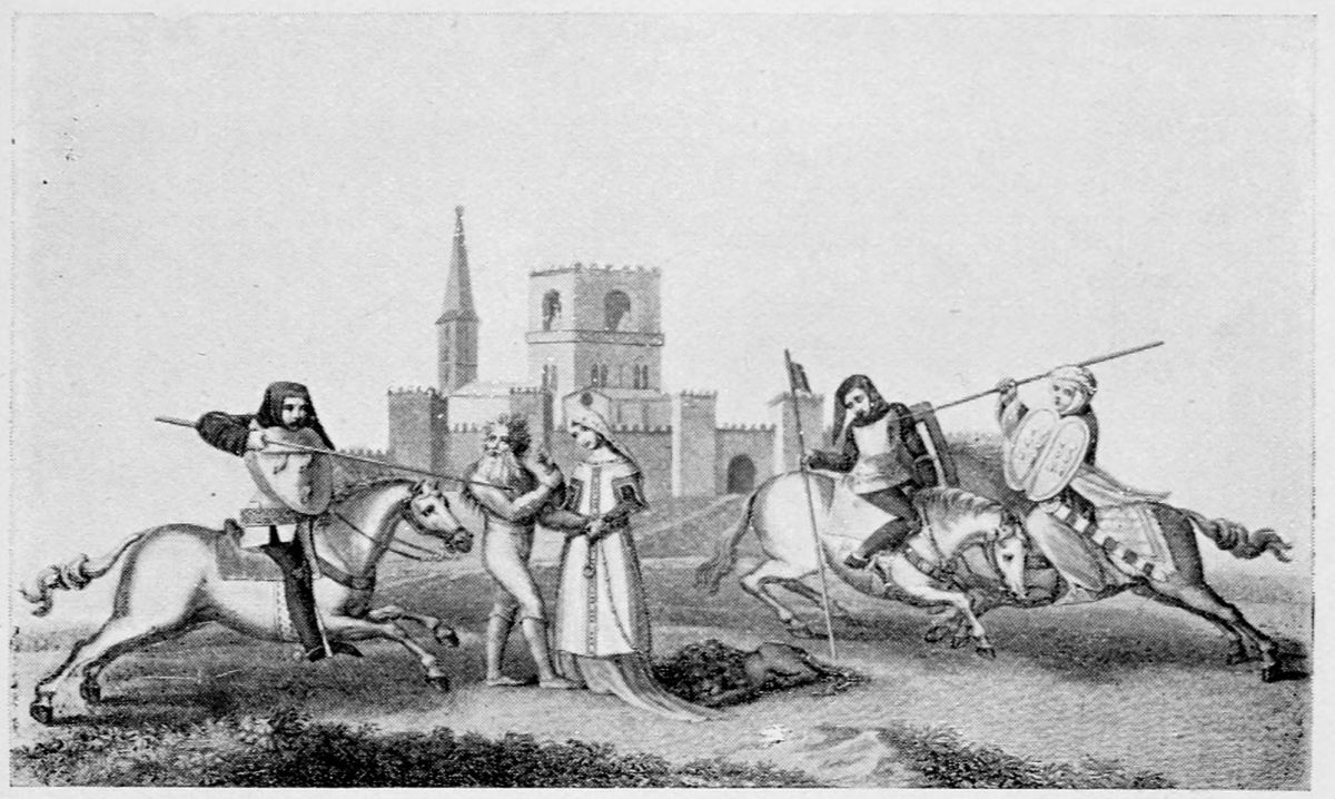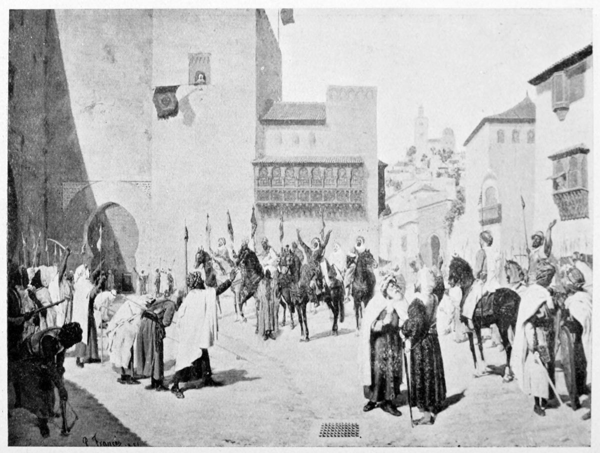 Mohammed V. was as virtuous and as unfortunate as his father. He had reigned but four{10} years when he was attacked in his own palace by the partisans of his half-brother, Ismail. Narrowly escaping death, he fled to his harem, and in the disguise of a slave eluded his pursuers and made his way to Guadix. Ismail II. ran a brief and inglorious career, and was dethroned and slain (1360) by the “Red King,” Abu Saïd. Meantime, Pedro I. of Castile espoused the cause of the lawful sultan and invaded the territory of Granada. But the magnanimous Moor would not consent to remount the throne at the cost of his people’s blood. Pedro accordingly withdrew, but freed Mohammed from his enemies by murdering Abu Saïd when the latter incautiously paid a visit to Seville. Mohammed was reinstated on his throne, and mindful of the services rendered him by Pedro, advanced to his support with a Grenadine army against Enrique de Trastamara. The tragedy of Montiel made a continuance of the struggle useless, and the Moorish sultan devoted the remainder of his reign to improving the condition of his subjects. He founded charitable institutions and asylums, and raised Granada to a high pitch of prosperity. The city, according to the contemporary writer, El Khattib, became the metropolis of the Mediterranean, the emporium of commerce, and the common fatherland of all nations. Under Mohammed V., the kingdom may be considered{11} to have reached its zenith. Thence to its nadir we count but a century of years.