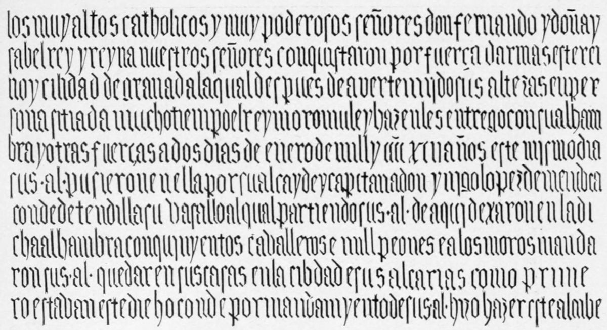 There remained now, of all the Moorish dominions in Europe, but the single city of Granada, of which Mohammed XII., Boabdil, was at last undisputed sovereign. He formed the manly resolution to sell his hard-won crown as dearly as possible. He sallied from Granada, took Alhendin and Marchena by assault, and laid waste the country in possession of the Christians. Summoned by Ferdinand and Isabel to surrender the city in accordance with an alleged treaty, he replied, and probably with truth, that his proud and exasperated subjects would not permit him to do so. The population of Granada was swollen by refugees from all parts of the kingdom to thrice its normal figure. The Spanish king perceived that the surest method to reduce it was by blockade. With 20,000 men, including some of the first chivalry of all Europe, he entered the Vega, and built the town of Santa Fé, almost at the gates of the threatened city. This permanent establishment of the Infidels on their native soil plunged the Moors into profound gloom. No ray of hope remained to the unfortunate Boabdil. The city endured the horrors of a famine. The Spanish fleet precluded all hope of supplies from Africa, towards which country the wretched people still turned in expectation of help. The negotiations for the capitulation which {23}the Sultan most reluctantly entered upon in October 1491, had to be conducted, through fear of the populace, with profound secrecy. Indeed, at the last moment, Boabdil, in danger of his life, besought Ferdinand to accelerate his entrance into the city. On January 2, 1492, accordingly, the Moorish king, attended by fifty horsemen, surrendered the keys to the Catholic sovereigns on the banks of the Genil, passing on to the domain allotted him by the conquerors in the rocky Alpujarras. The story of his stopping to gaze for the last time on his former kingdom, and of the rebuke administered to him by his mother, is well known. We are not told whether his eye caught the gleam of the great silver cross hoisted over the Alhambra by Cardinal Mendoza by way of signal to the Spanish host that the occupation of Granada was completed and that the dominion of Islam in Spain was for ever at an end.