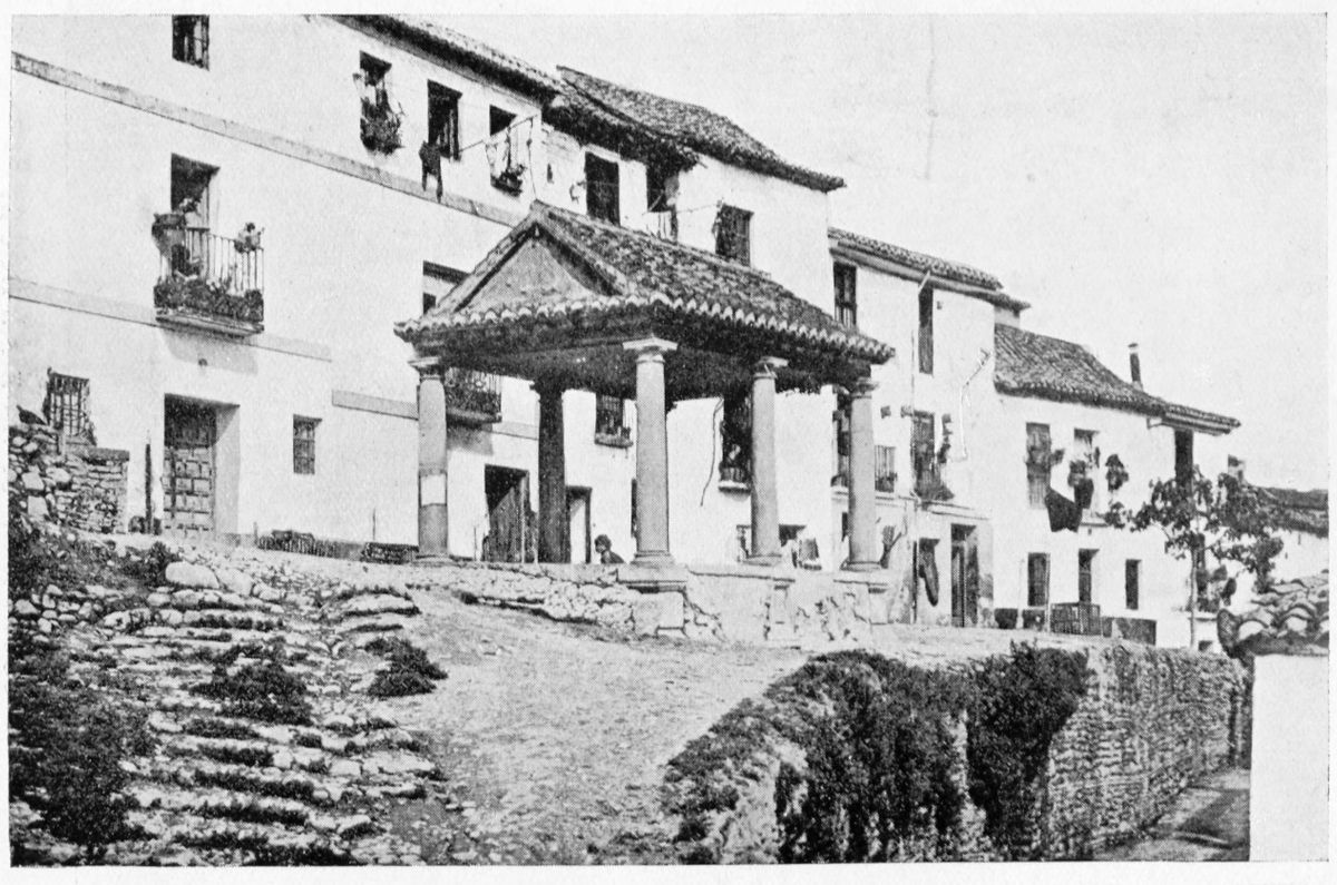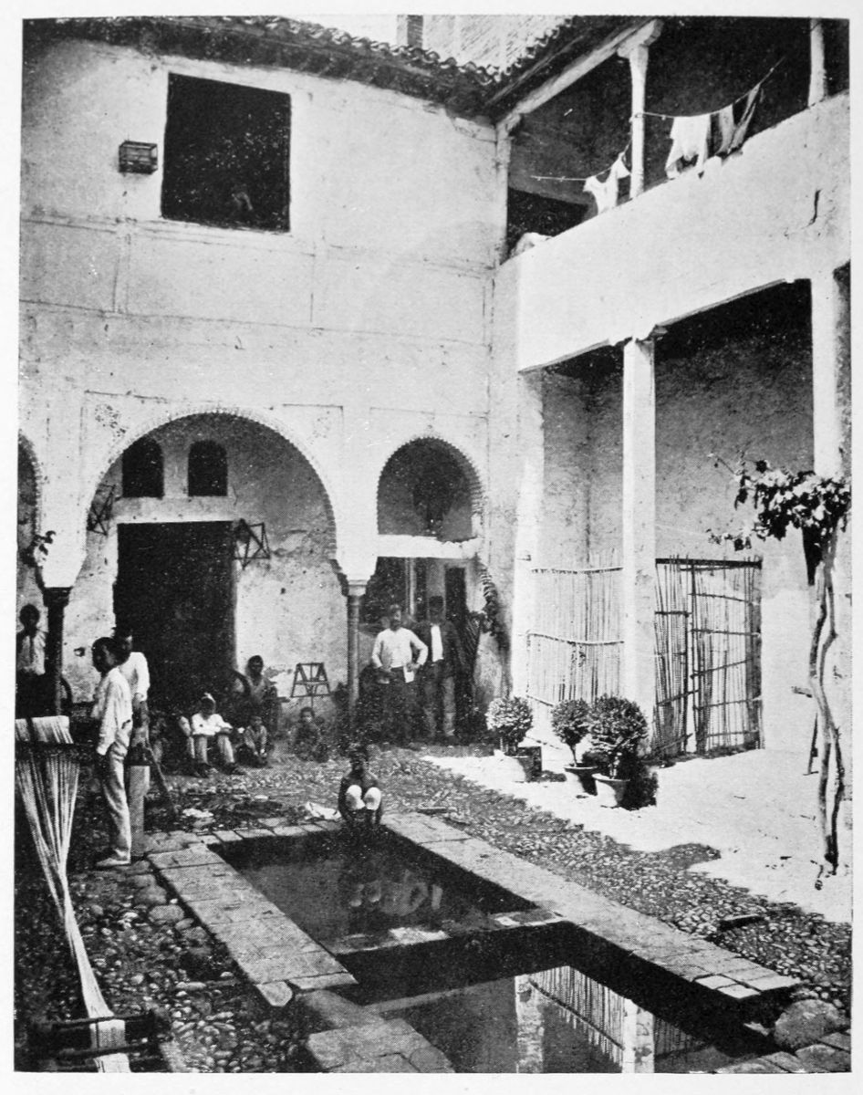 The summit of the Alhambra hill was probably peopled in Al Ahmar’s time, and it continued to be so during the reigns of his successors. The population thus dwelling at the foot of the throne was mainly composed, in later times at least, of{32} hangers-on at the Court, ex-favourites and discarded sultanas, ulemas and doctors of the law, soldiers of fortune, and ambassadors, permanent and extraordinary. Such powerful tribes as the Beni Serraj, which exercised so much influence in the last stages of Nasrite rule, would also have had quarters for their leaders here. The little town—which seems to have had no parallel before or since—extended from the eastern extremity of the hill to within as near the doors of the palace as the temper of the monarch for the time being may have permitted.