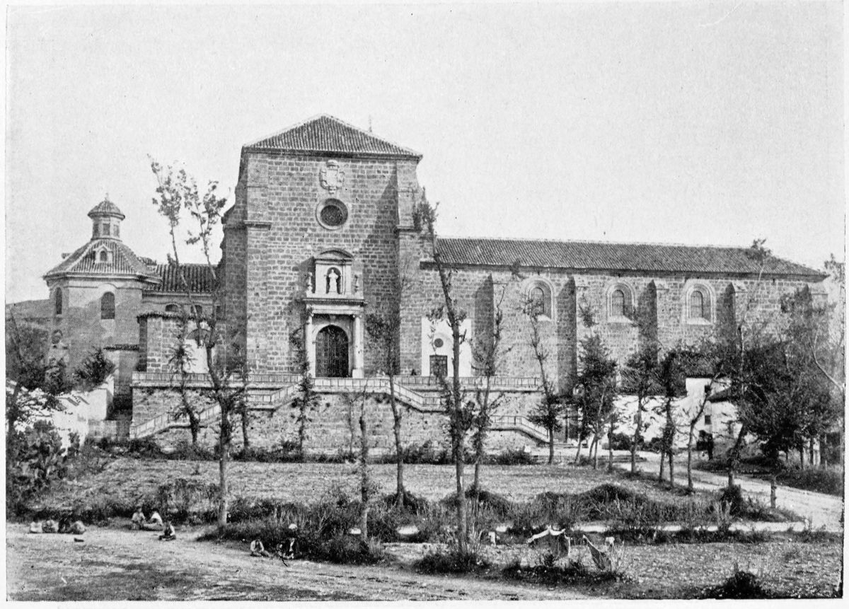 The grand Mosque of the Alhambra was built in 1308 by Mohammed III., and was in good preservation until the occupation of the French, who, according to Gayangos, entirely destroyed it. An account of it has been left to us by Ibn-ul-Khattíb, the Wizir of Yusuf I.: “It is ornamented with mosaic work and tracery of the most beautiful and intricate patterns intermixed with silver flowers and graceful arches, supported by innumerable pillars of polished marble; indeed, what with the solidity of the structure which the Sultan inspected in person, the elegance of the design, and the beauty of the proportions, the building has not its like in this country, and I have frequently heard our best architects say that they have never seen or heard of a building which can be compared with it.” Little more remains of this superb temple than the small oratory entered through a door in the wall opposite the altar of the chapel. Here the mihrab is still to be distinguished. Before it, Yusuf I., in the act of prayer, fell a victim to the poniard of an assassin in the year 1354.{39}