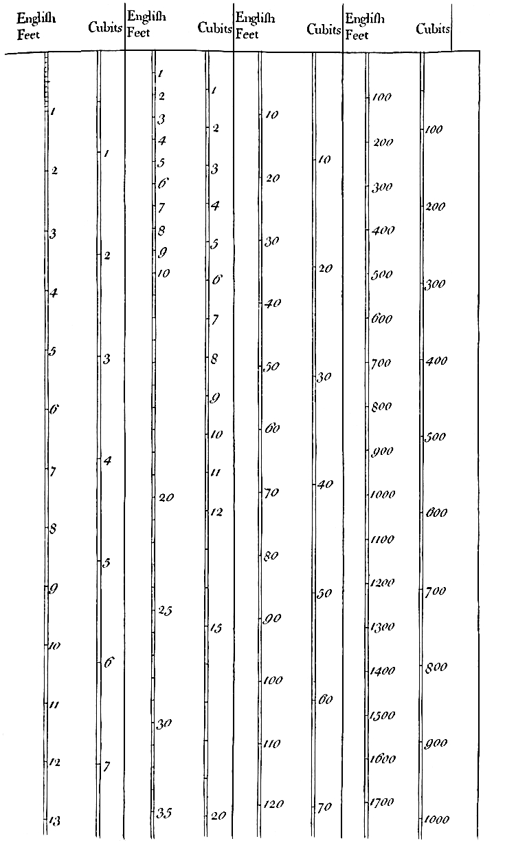 I have repeated the table of the Druid cubits collated with our English feet, which will be of service to us throughout this work, plate II.
