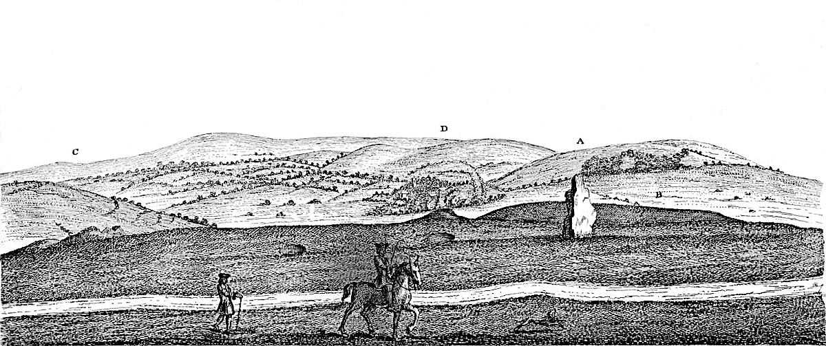 Near the arch-druid’s barrow, by that call’d the Kingstone, is a square plat, oblong, form’d on the turf. Hither, on a certain day of the year, the young men and maidens customarily meet, and make merry with cakes and ale. And this seems to be the remain of the very ancient festival here celebrated in memory of the interr’d, for whom the long barrow and temple were made. This was the sepulture of the arch-druid founder. At Enston, a little way off, between Neat Enston and Fulwell, by the side of a bank or tumulus, stands a great stone, with other smaller. ’Tis half a mile south-west of Enston church. A famous barrow at Lineham, by the banks of the Evenlode.