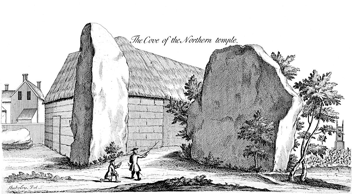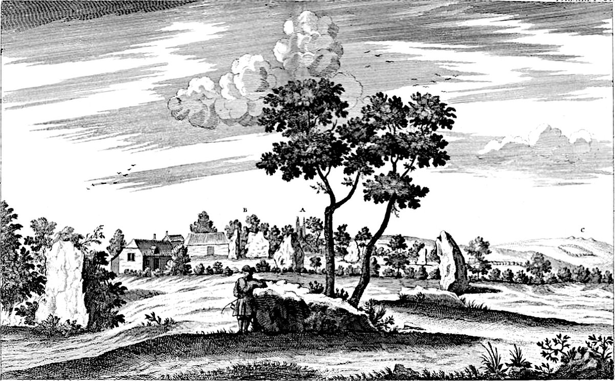 The mighty carcase of Stonehenge draws great numbers of people, out of their way every day, as to see a sight: and it has exercis’d the pens of the learned to account for it. But Abury a much greater work and more extensive design, by I know not what unkind fate, was altogether overlooked, and in the utmost danger of perishing, thro’ the humor of the country people, but of late taken up, of demolishing the stones. Mr. Camden the great light of British antiquities, took Kennet avenue to be plain rocks, and that the village of Rockley took its name from them. It is strange that two parallel lines of great stones, set at equal distance and intervals, for a mile together, should be taken for rocks in their natural site. As for the town of Rockley, ’tis four miles off, has nothing to do with this antiquity, tho’ probably had its name from the adjacent gray weathers, whence our stones were drawn.