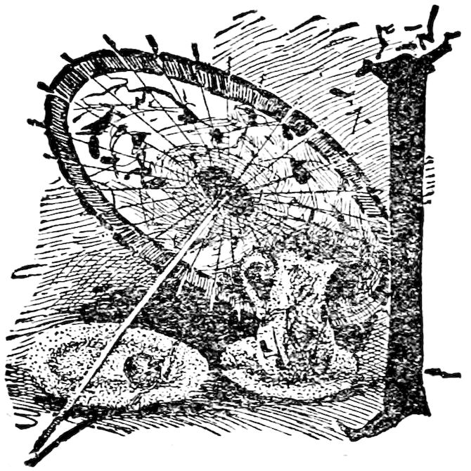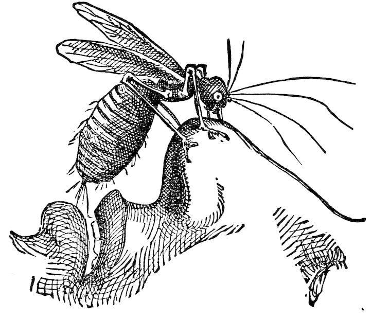 “Numerous?” he answered; “you should be here a warm, sunshiny day, if you want to see cockroaches, for then all the invalids are out—those fellows who have had their movements across the table accelerated by a snapping finger, or such as have only tasted the poison scattered around for their benefit, or those who have taken an overdose and throwed it up again. These lie in cracks and cupboards, with stiffened joints and weak stomachs, when the weather is cold and cloudy; 486but when a warm day comes, they are all abroad and busy.”