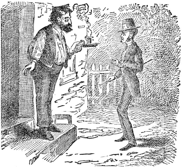 There was something in the pair that reminded me of Parrhasius and the Captive; and being in somewhat of a sketching mood myself at the time, I produced my book and pencil, 511and leaning over the fence, sketched the painter and his howling model.
