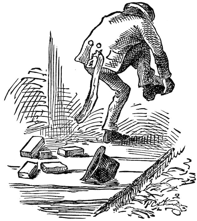 515The washerwoman is doubtless a hard-working and deserving old body, who perhaps has sunk her whole week’s earnings in a Christmas turkey, that her children’s hearts may be made glad and their stomachs full; and it would be a great pity if it should be spoiled i’ the cooking for the want of fuel.