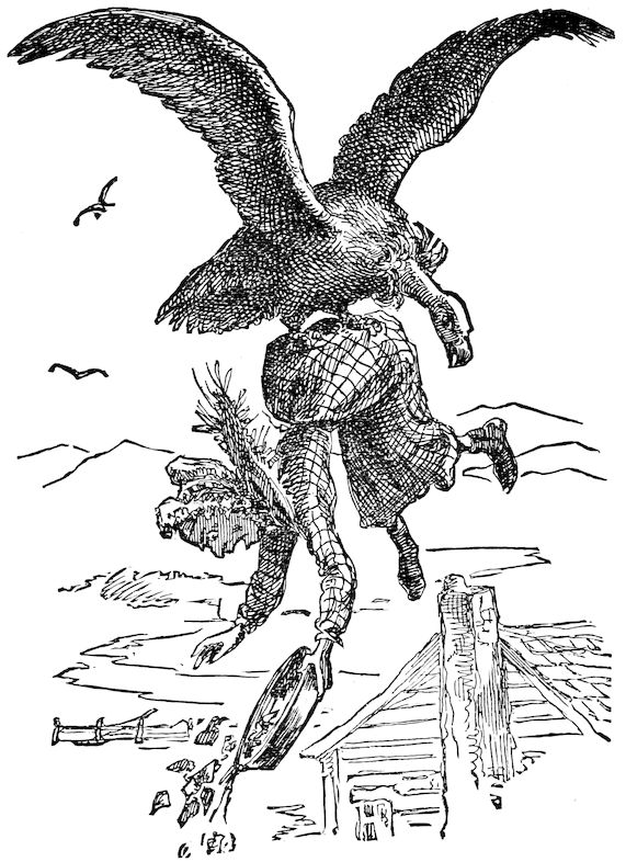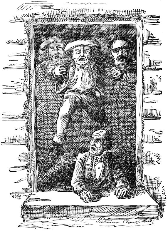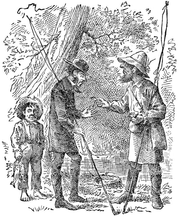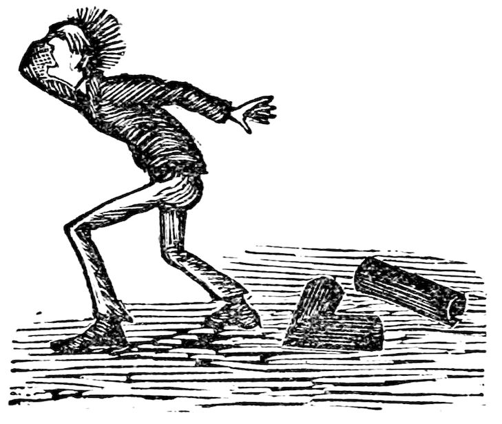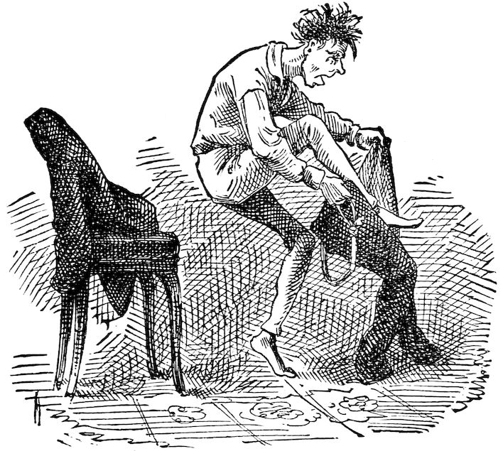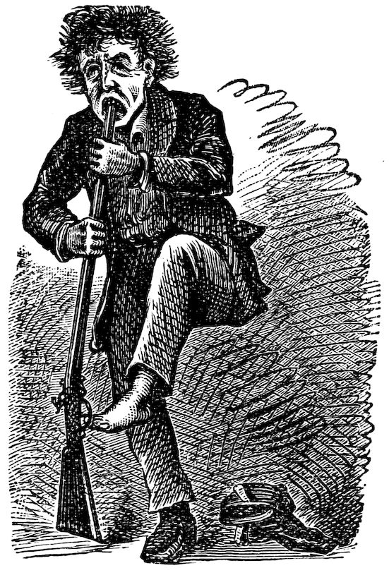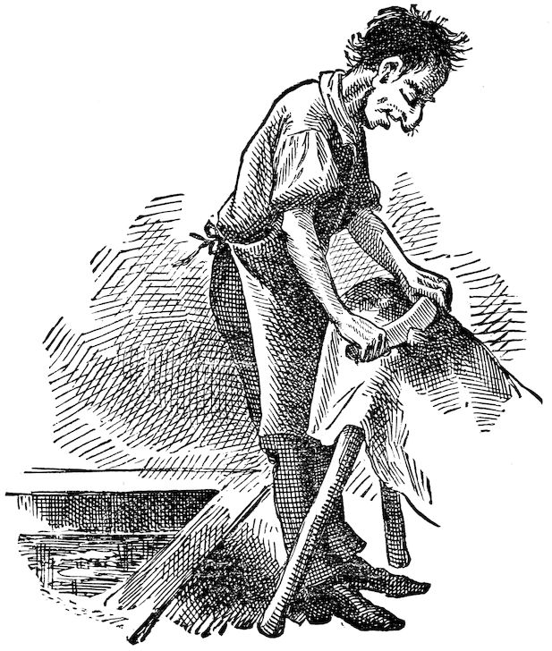 “Pooty soon his leg slipped over, and then he went, end over end more’n twenty-five feet, into the river, and was carried over the falls before anybody missed him. Arter that people weren’t troubled so much with corns around Grab Corner, for though he’s dead now, I’ll say 479it of him, he was the wust shoemaker that ever shoved an awl into a hide.