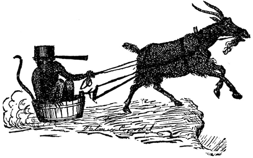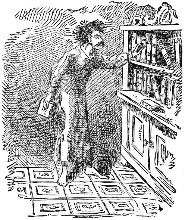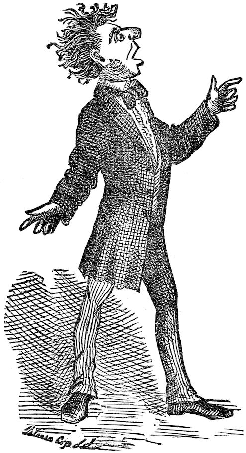 Christmas Eve! I sit idly by my window, listening to the rapid patter of the rain upon the shingles and the wild whistle of the wind as it plays around the gables, or draws weird music from the telegraph wires stretched between the house tops, and upon which dangles the ghost of many a schoolboy’s kite. Christmas Eve! and I am not yet invited out to dinner! what can this mean? Am I then left to wither for want of attention, like some poor shrub plucked from a garden and planted in a graveyard? Well, let it be so. Alone though 514I am, I nevertheless enjoy myself hugely, and it requires considerable to enliven me now. There was a time when I could be moved to mirth by very little. The desperate efforts of a one-legged grasshopper describing circles while endeavoring to leap straight ahead, would amuse me for hours together. But it is not so now; I turn from such scenes to bury my eyes in the pages of profound works, and it is meet and proper I should.