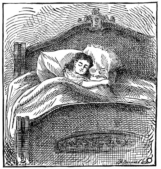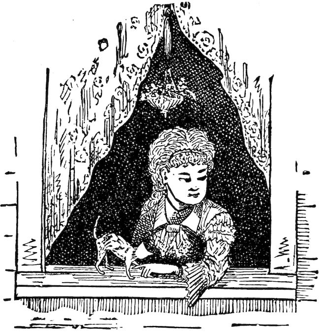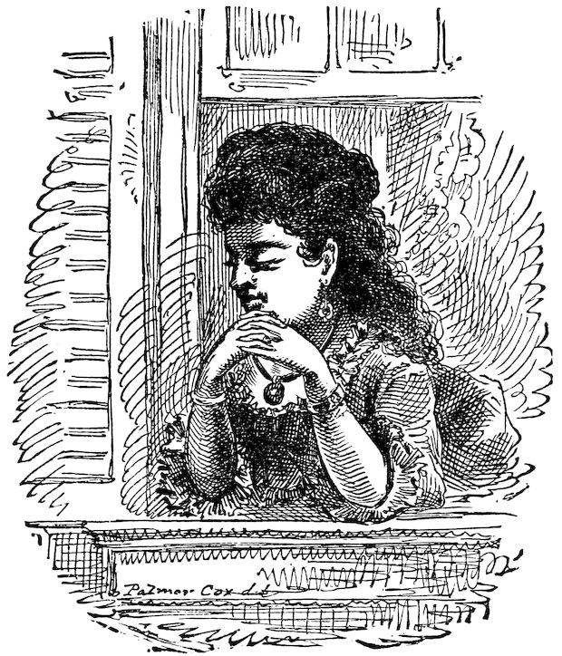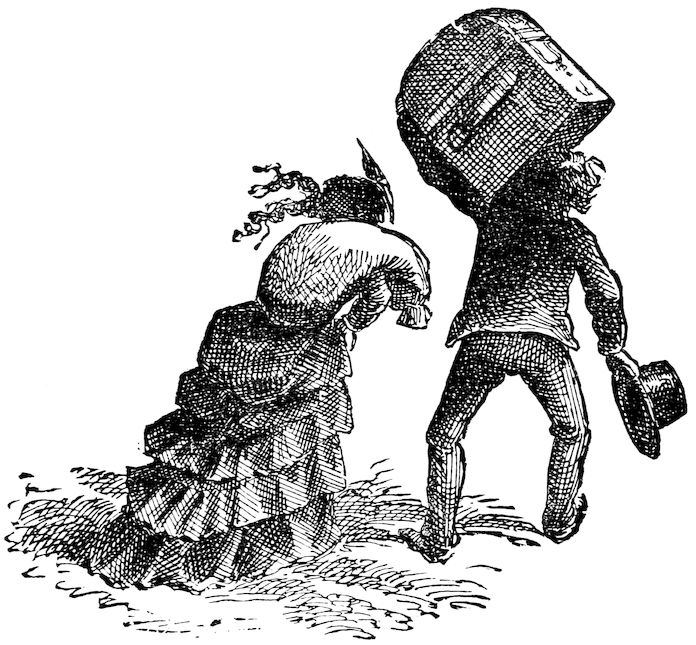 As I looked back, I could see her groping toward the house, her visage still concealed in the 509blue bucket. She did look odd enough, as she felt her way up the steps, decorated with that novel head-dress.