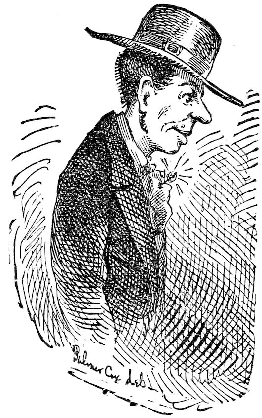 “Abe tried to bring ’em down to their work agin, and in the meantime I kind of corkscrewed ahead and swung into the centre of the road in advance of him. Then I began to 476feel somethin’ like a feller what holds the winnin’ cards, and sees the other chaps a-pilin’ up the coin on their inferior pasteboards. But I see some young half-breeds a-squattin’ around on the road about a quarter of a mile ahead, and knowed at the rate we war travellin’ we’d be on top of ’em before they’d see us if I didn’t haul up.