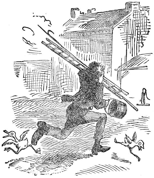 There was quite an excitement in the town before I left. A fire broke out in an ash barrel situated in the rear yard of the house at which I was stopping, and for a time threatened to destroy the ashes. There is no estimating the amount of damage the citizens might have suffered if the fire had spread to a wash-tub that stood close by, and which at the time contained a portion of the town’s washing. Business was generally suspended, and stock in the insurance companies went down immediately. The citizens breathed more freely, however, when the efficient and energetic Fire Department turned out promptly as one man, and hastened to the 506city water-works, situated on a slight eminence in the centre of the town, and, turning on the water, succeeded in extinguishing the flames. The only damage done was the partial burning of the barrel and the scorching of the wash-tub and five dog-houses. The dogs were lying under the kitchen stove at the time, and escaped injury.