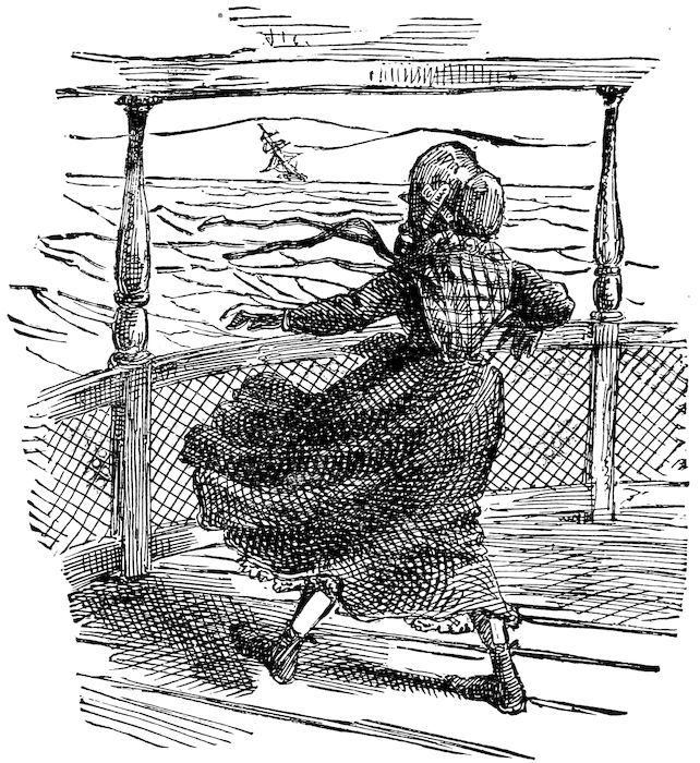 On my way back to the city the bay seemed even rougher than in the morning. There was hardly a passenger on board the ferry-boat but showed symptoms of trouble. Although most of them would have been excellent subjects for the artist of a comic pictorial, my attention was specially directed towards an elderly lady who 512sat with folded arms, the elbows resting upon her knees, and a most woe-begone expression upon her wrinkled visage. Some passengers who were sick were able partly to conceal their emotions; she was not; every muscle of her face betrayed her. She was sick and couldn’t help but show it.