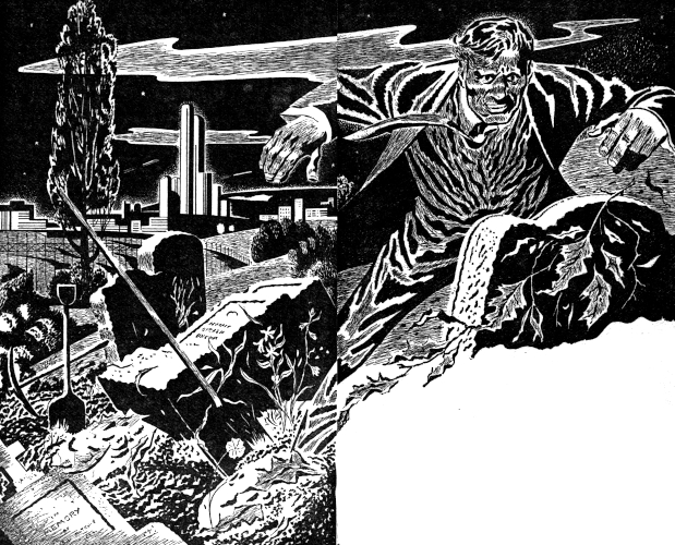"Take care of yourself, William Lantry," he murmured. "You're the last one, the rare item, the last dead man. All the other graveyards of earth have been blasted up. This is the last graveyard and you're the last dead man from the centuries. These people don't believe in having dead people about, much less walking dead people. Everything that can't be used goes up like a matchstick. Superstitions right along with it!"