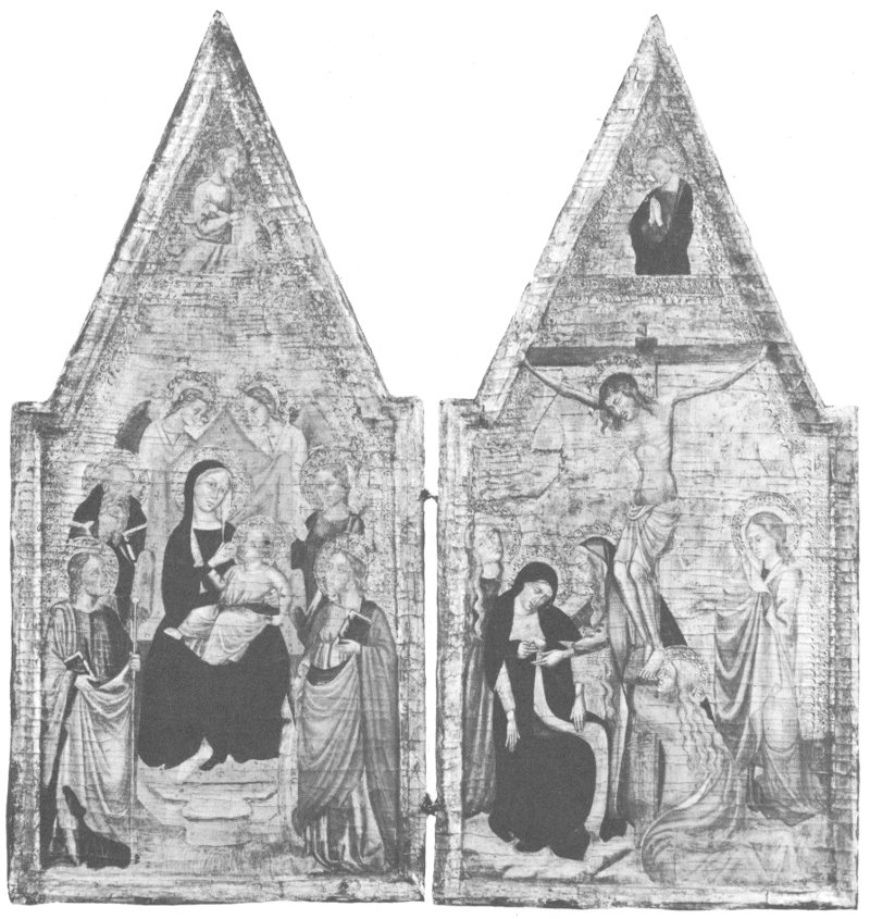 ABOVE: An example of a flourishing nineteenth-century industry: a forgery of a fourteenth-century Italian diptych, with (BELOW) a genuine example for comparison. The crackle and facial types indicate the forgery.