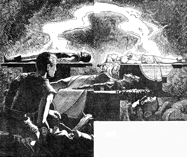 In the Chamber of Living Death, she who had been Slyss of Aakan quivered fitfully. A bubble of froth broke from her red lips. She moaned and stirred. A hand lifted, struggled feebly, fell back to her side, limp and waxen.