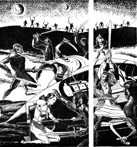 There was no more time for thought, for the three men were upon him. He slipped his second sword free and stood facing them, searching for some hint as to their identity. Overhead the air-sled hovered, waiting....