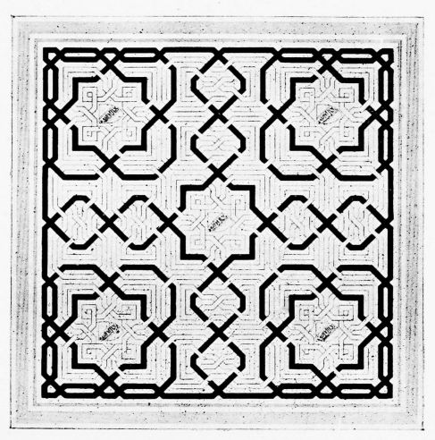 [9] Edited by Pablo Lozano. The antiquities and history of the Moorish domination in Spain remained unheeded until representations were made that research and accurate delineation would alone make their monuments intelligible. The Royal Academy of St. Ferdinand was commissioned to make drawings of the Palace of the Alhambra and of the Mosque of Córdova. The result of their labours were published at Madrid, in 1780, in a folio volume entitled as above, with sixteen plates of Arabic designs, accompanied by a few pages of letterpress. It is an exceedingly rare volume.
