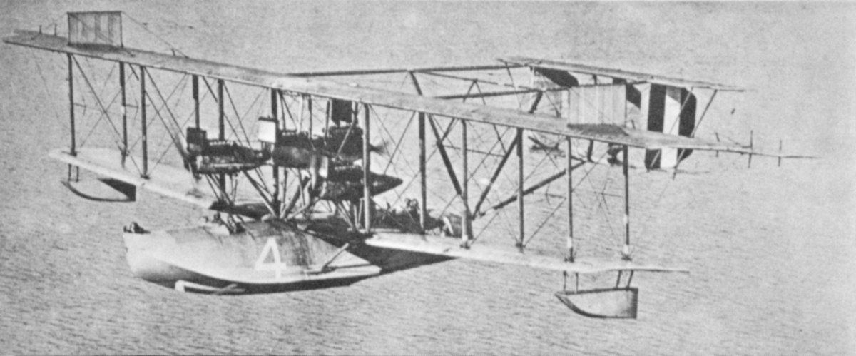 Aerial mastery of the Atlantic was first achieved in 1919 in the Liberty-powered NC-4, shown in this U. S. Navy photograph.