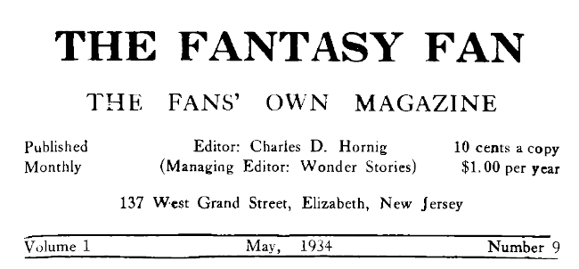 "Just a note to tell you how much I enjoyed this THE FANTASY FAN. Miraculously, it continues to improve. I don't see how you do it! 'Prose Pastels' by Clark Ashton Smith was a very beautiful bit of word-painting. He has a deftness with the pen that seems to conjure up visions and make the paper seem alive with scenes he describes."—F. Lee Baldwin