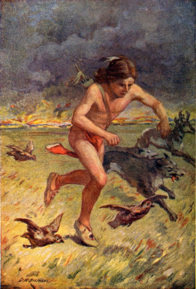 Captain Clark lifted his hand and called an order. But already every rifle in pirogue and canoes had been leveled, on every trigger was a tense finger—and “Bang!” spoke all together.