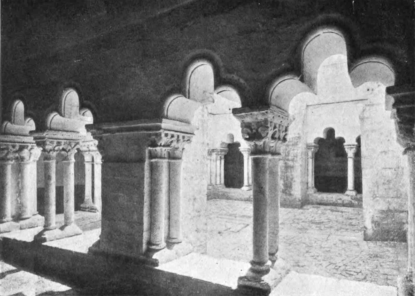 Barcelona, it will have been seen, abounds in ancient and interesting churches. San Pablo{19} del Campo was founded in the first decades of the tenth century by Count Wilfred II., who was buried in it, as his epitaph on a Roman tablet attests. Destroyed by Al Mansûr, the church was rebuilt on the same plan in 1117 by Jinbert Jintardo and his wife Rotlandis. The west front has retained much of its primitive Romanesque character. The symbolical sculpture is crude and curious. The interval is very striking in its simplicity. The cloister is more ornate and the decoration is considered by some to mark the transition from the Romanesque to the Moorish style. More eastern in character is the venerable church of San Pere de las Puellas, believed to date from the tenth century. It is so called from the nuns who formerly inhabited the adjoining convent and who, at the time of Al Mansûr’s invasion, cut off their lips and noses to avoid the amorous attentions of the Moors.