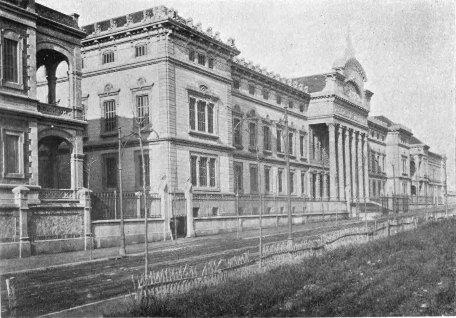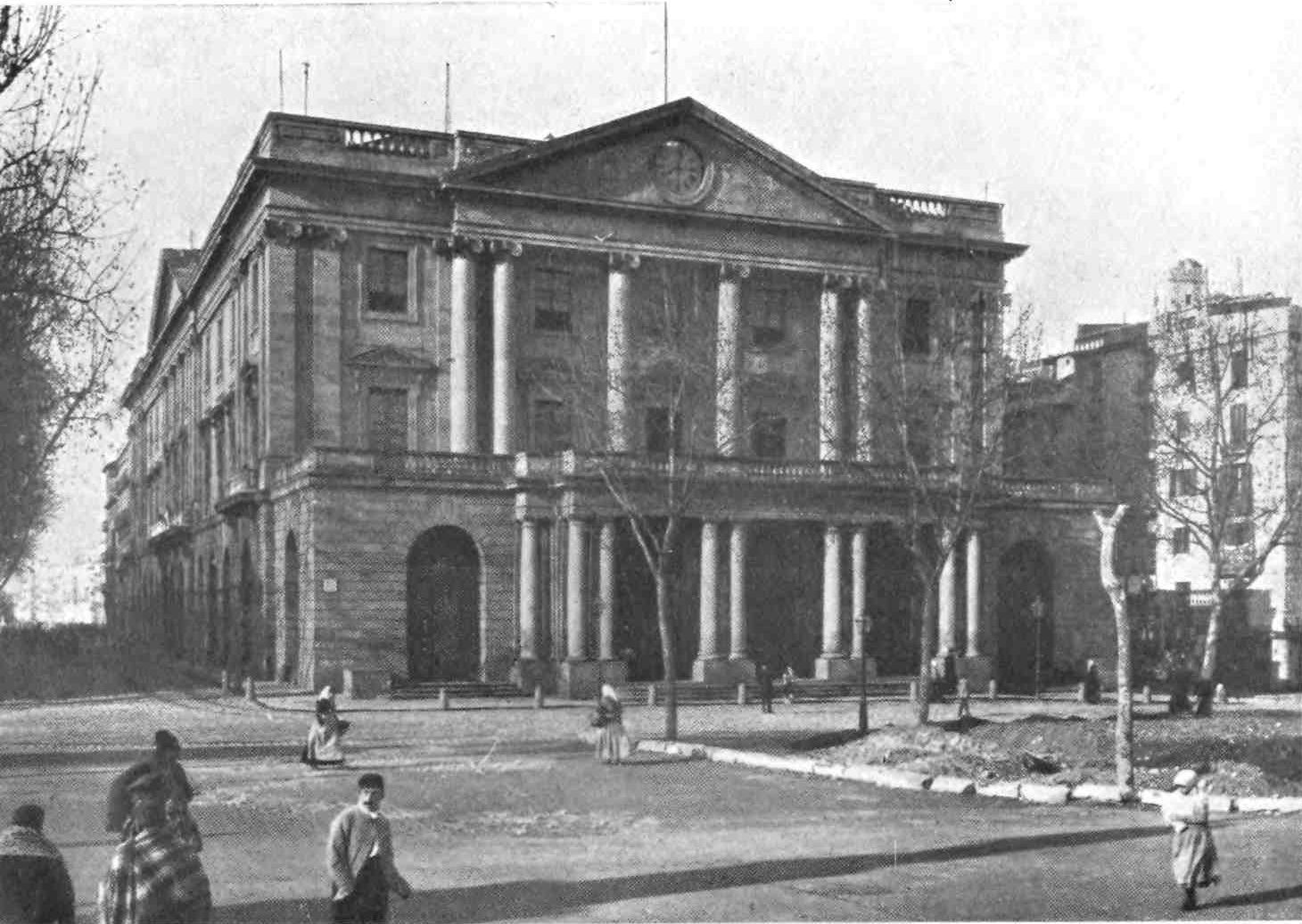 The halls breathe the dignity and gravity of a great corporation. The majestic Salon del Tribunal with its dome and hangings is adorned with portraits of the Kings of Spain, and paintings by Fortuny, one representing the victory of Marshal Prim over the Moors at Tetuan. Catalonia keeps ever green the memory of her heroes.