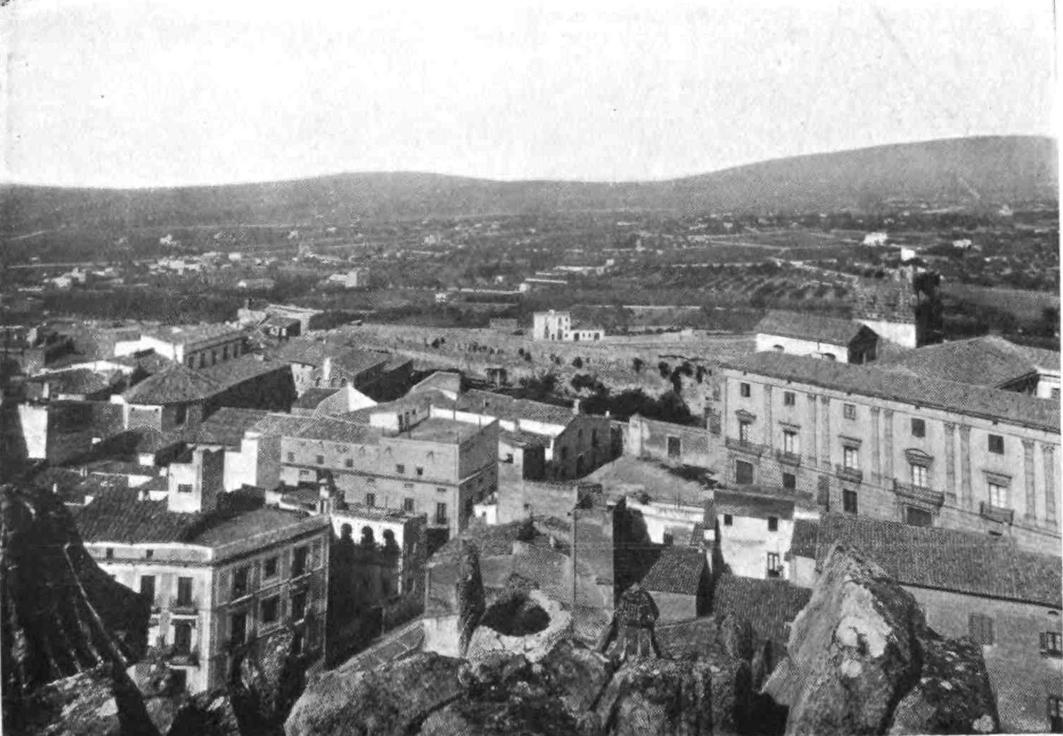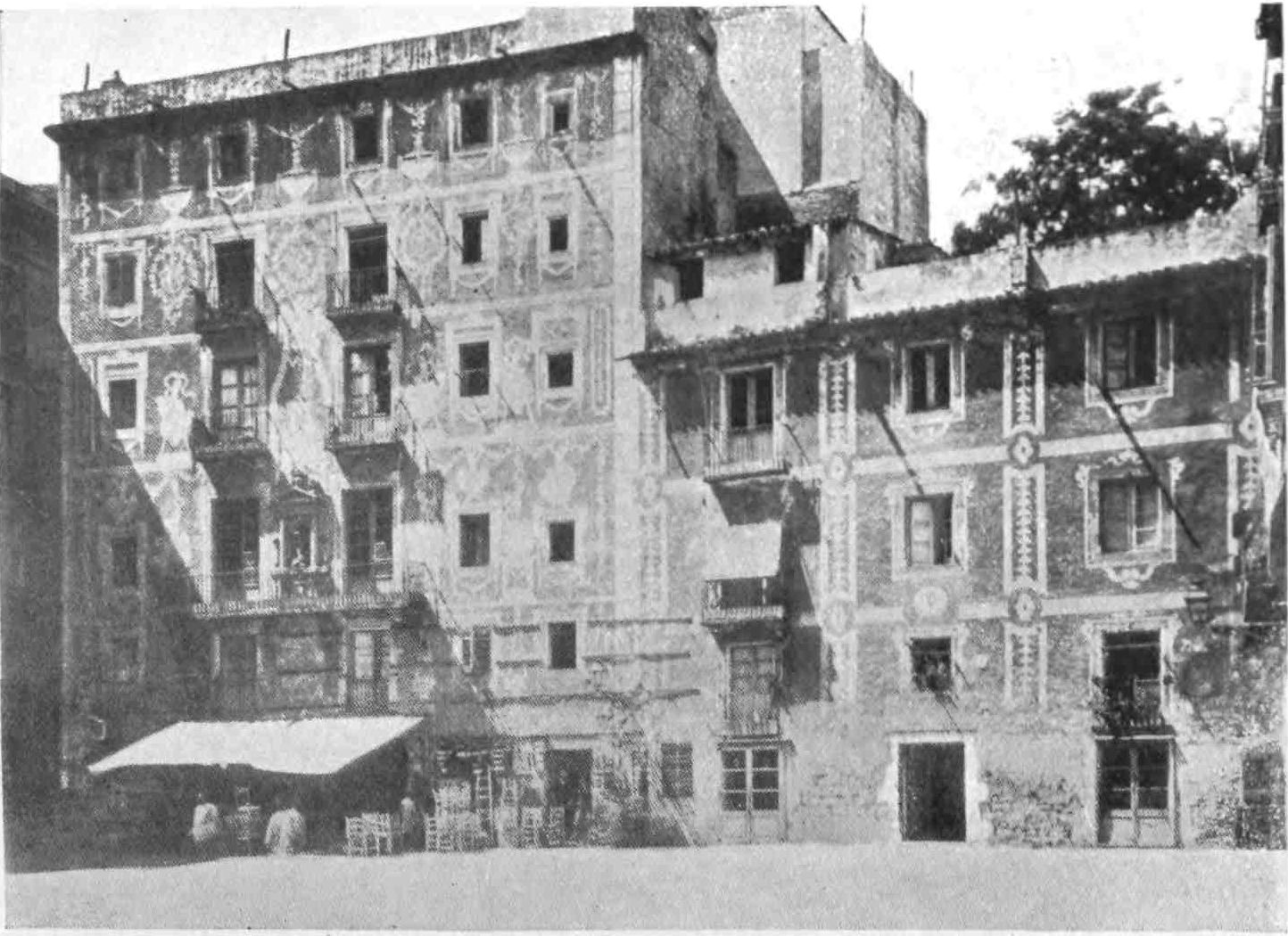 A picture of his funeral may be seen at the Town Hall, which is a rather imposing Renaissance building adorned by one of those heavy projecting eaves, carved and once painted, that one sees at Granada. Another house that should be noticed is the Casa Bonapart, said to have been founded by an ancestor of the Imperial family in 1411.