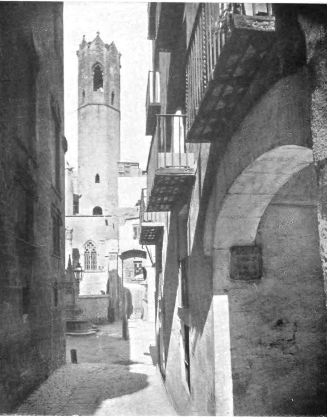 Gerona, then, has covered itself with glory, not once, but repeatedly. The very paynim Moors were invigorated by the heroic atmosphere, for we read that as long ago as 785 they defied the arms of Louis the Pious, till the Christian townsfolk, thinking that enough had been done for the renown of Gerona, arose and expelled them. In the succeeding centuries the Geronese grew used to this business of sieges, and their assailants{24} grew more wary. In 1285 the French King, Philippe le Hardi, sat down before the town and contentedly starved it into submission. Gerona yielded under protest, and took care to place it on record that she was not taken by force but by hunger, as the inscription not “per forsa, mes per fam” over the Puerta de la Cárcel to this day testifies. More than four centuries later came another Philippe from beyond the Pyrenees, welcomed by all Spaniards except Catalans. Gerona stubbornly held out for Austrian Charles, and her garrison of 2000 men bade defiance to Philippe’s 9000. The Bourbon won; and to punish the recalcitrant city abolished her University. But a hundred years after, Gerona recovered her laurels. Her garrison of three hundred men, commanded by Colonel O’Daly, withstood successfully the repeated assaults of 6000 French under Duhesme, and beheld in August 1808 the hurried and inglorious flight of the besiegers. Of the great siege of 1809 you may read in the pages of Napier. The commander and hero of the defence was Mariano Alvarez—a much finer fellow than Palafox; and had he not been stricken with fever and rendered unconscious, the town might not have surrendered, as it ultimately did after a seven months’ siege. It had cost Napoleon 15,000 men. Here, as at Saragossa, the women fought beside the{25} men and worked the guns, under the banner of St. Barbara. Unconquerable Gerona! Well might the heirs to the crown of haughty Aragon have been proud to bear the title of your prince.