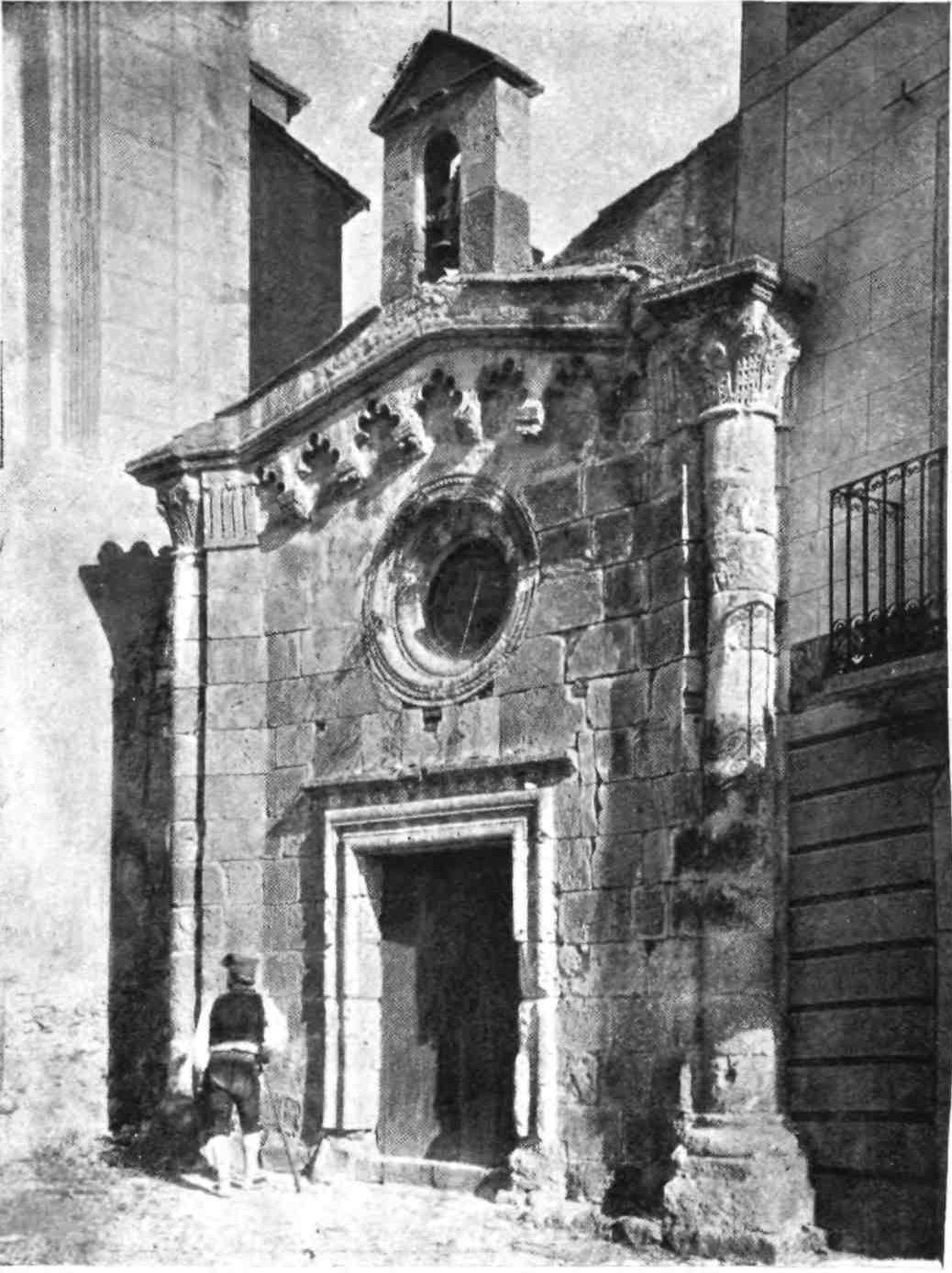 Contented with their magnificent cathedral the people of Tarragona have done little to adorn their city with smaller churches. Adjacent to the seminary there stands the graceful little chapel of San Pablo, the origin of which is still a matter of conjecture. Its architectural features suggest the first half of the thirteenth century, with the exception of its west porch, which belongs to no recognised style. The chapel is first mentioned in a document of the year 1234.