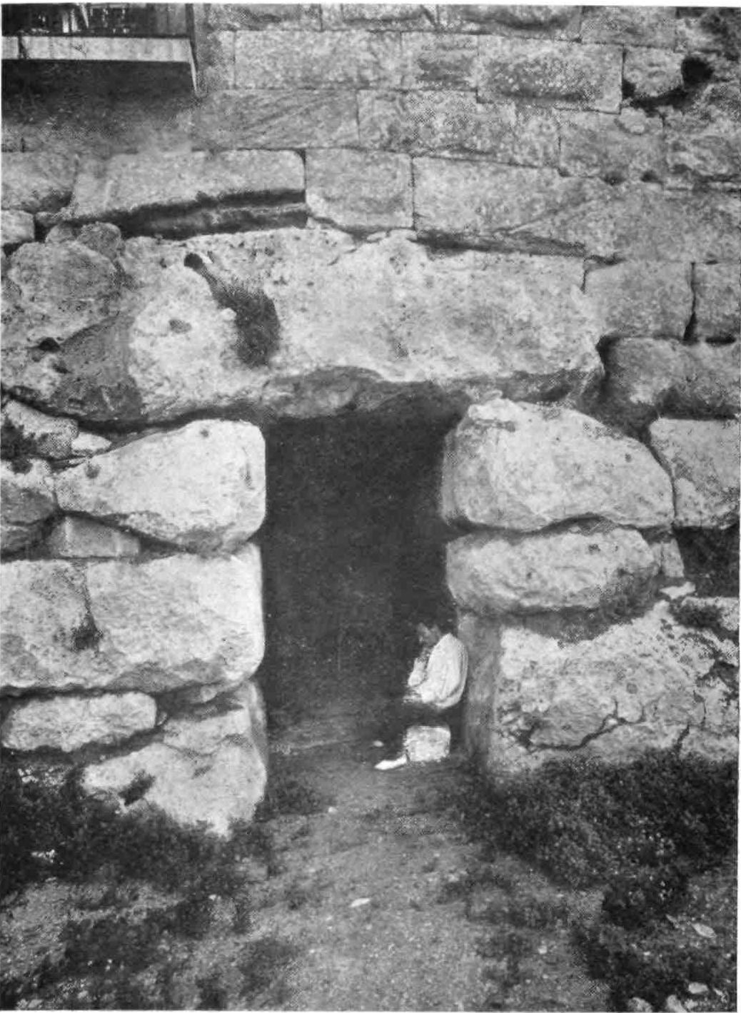 To the economist, then, the island of Menorca must be of interest, but it is infinitely more so to the archæologist. From end to end it is strewn with the works of prehistoric man, whose record in stone is hard to read. These megalithic remains present a strong resemblance to the mirage{101} of Sardinia and Malta, but have also local characteristics which have puzzled and delighted the learned. M. Cartailhac has traced the sites of many ancient villages. The most considerable may be seen at Torre d’ea Galines, south of Alazor. There, on the summit of a slight eminence, a vast pile of stones is all that remains of the “city” to which the naked aborigines fled wildly the instant a sail rose above the horizon. In the constant and arduous struggle waged by the present inhabitants with the stones and the rock, the limits of the stronghold have, ages ago, disappeared, and if it had an outer wall it can no longer be traced. The dwellings were grouped together so closely that no streets can be distinguished. No chariot or beast of burden could have been known to the citizens. They communicated with each other by corridors leading from cabin to cabin. Here and there the doorways remain intact and uphold a heavy lintel of stone.