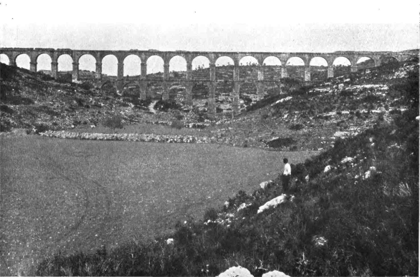 The noblest handiwork bequeathed to Cataluña by the conquerors of the world is, however, the Aqueduct, which may be compared favourably{62} as regards preservation and solidity with the more famous work of the same kind at Segovia. Where it spans a valley it is composed of two series of arches, eleven below and twenty-five above, and rising to a height of 217 metres. The stone of which it is built was Obtained from the caves of Monte Loreto, where the quarries may still be seen.