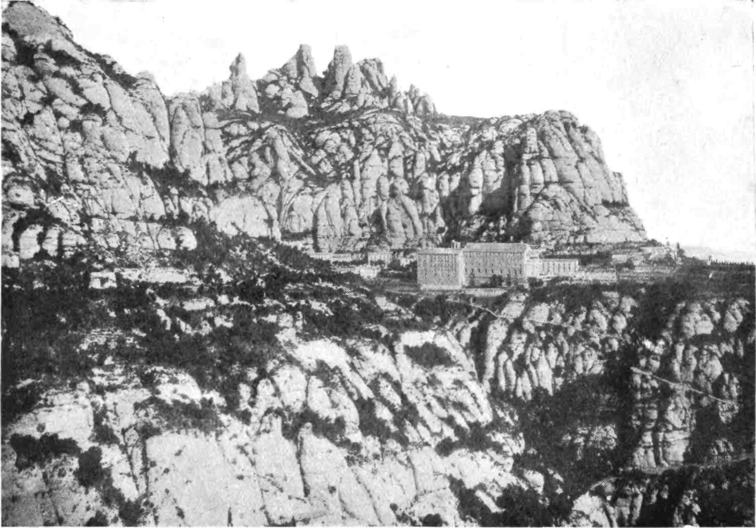 Montserrat, easily accessible from Barcelona, is one of the four or five renowned shrines of Christendom. The legend of its institution is one of the quaintest and at the same time silliest in the annals of hagiology. In the time, it seems, of Count Wilfred, the Henry of Barcelona, there dwelt on the mountain a hermit named Guarin whose sanctity was famed even to the ends of the earth. Church bells rang of their own accord when he passed, and the forces of nature were at his beck and call. This being so, when Richildis, the Count’s daughter (she was beautiful, of course), became possessed of a devil, Guarin was at once called in to turn him out. Such a task was a mere matter of an Ave and an invocation on the part of the holy man; but the devil thus incontinently expelled from the person of Richildis appears to have passed into the body of the hermit. He conceived an unlawful passion for the maiden, who remained with him after her cure, to learn the arts of sanctity. He succumbed to temptation and consummated his crime by murdering the girl, cutting off her head and burying her in his cave.{74}