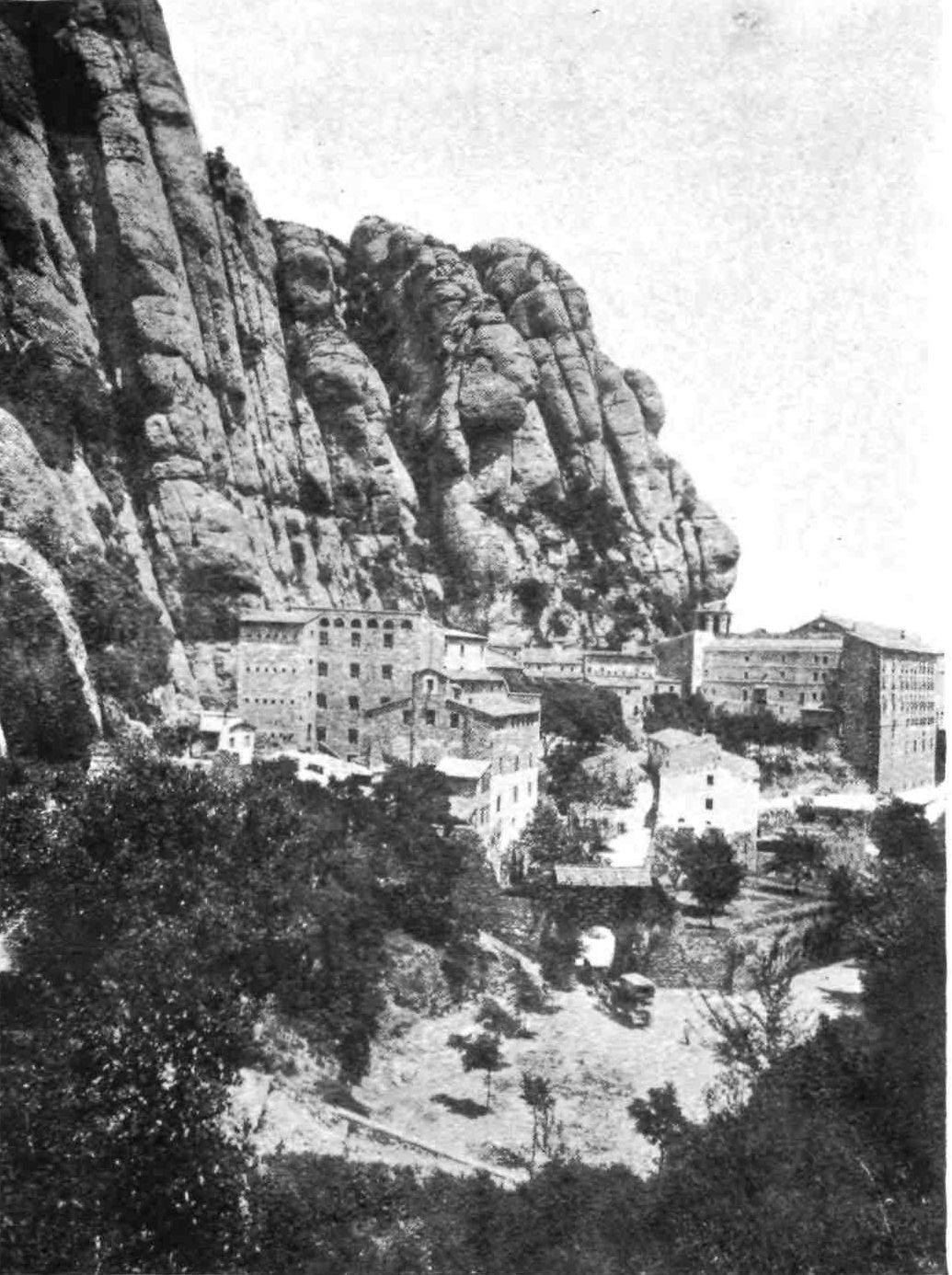 It is not, of course, to pray before the shrine of Guarin that pilgrims climb the ragged sides of the saw-edged mountain. Long before the hermit immortalised his name by his crime and his repentance, a miraculous image of the Virgin, said to have been carved by St. Luke, and brought to Spain by St. Peter, had been hidden, to save it from the infidels, in one of the caverns. Nearly two hundred years after, its whereabouts was revealed to some shepherds by lights and mys{76}terious melodies. These manifestations were repeated every Saturday—that being the day of the week specially consecrated to the Virgin by the Church. The Bishop came over to investigate the phenomenon, and on entering the cave whence the sounds proceeded, they found the heavy image carved by St. Luke. So heavy was it that it resisted all efforts to remove it; so there it remained till the end of the sixteenth century, when it was found possible to enshrine it in the present church.